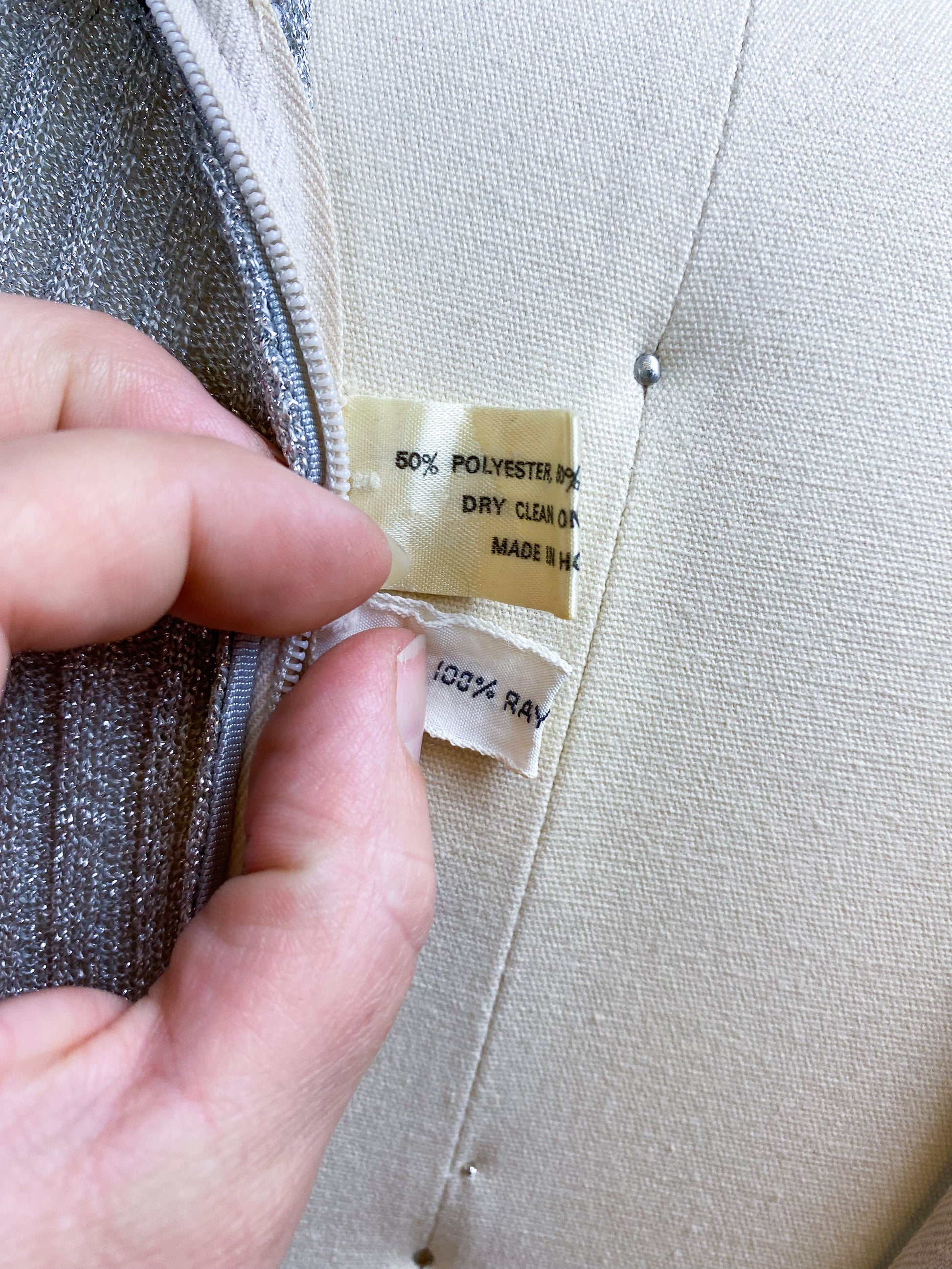 Material: 50% poly, 50% rayon metallic, 100% rayon lining