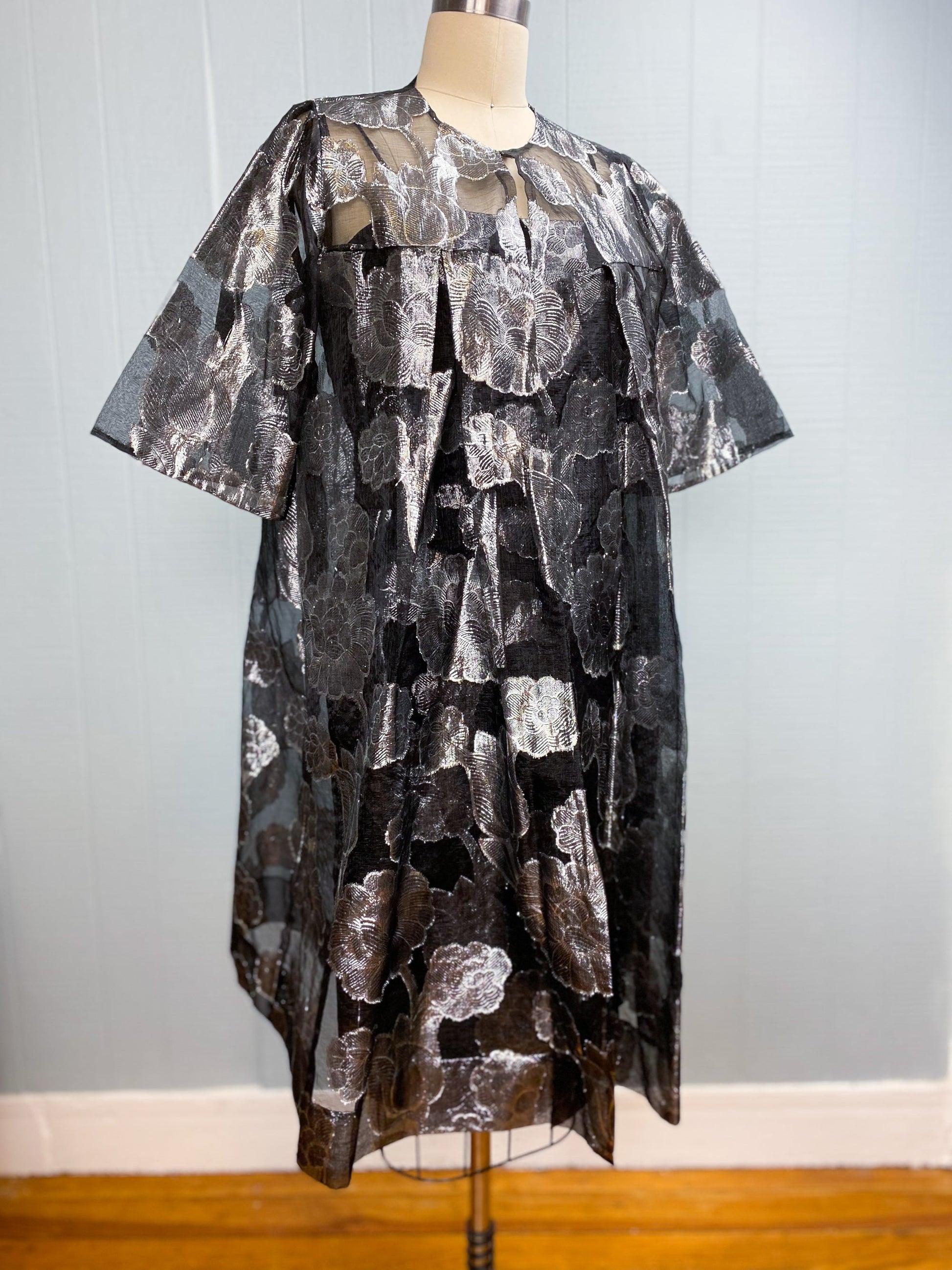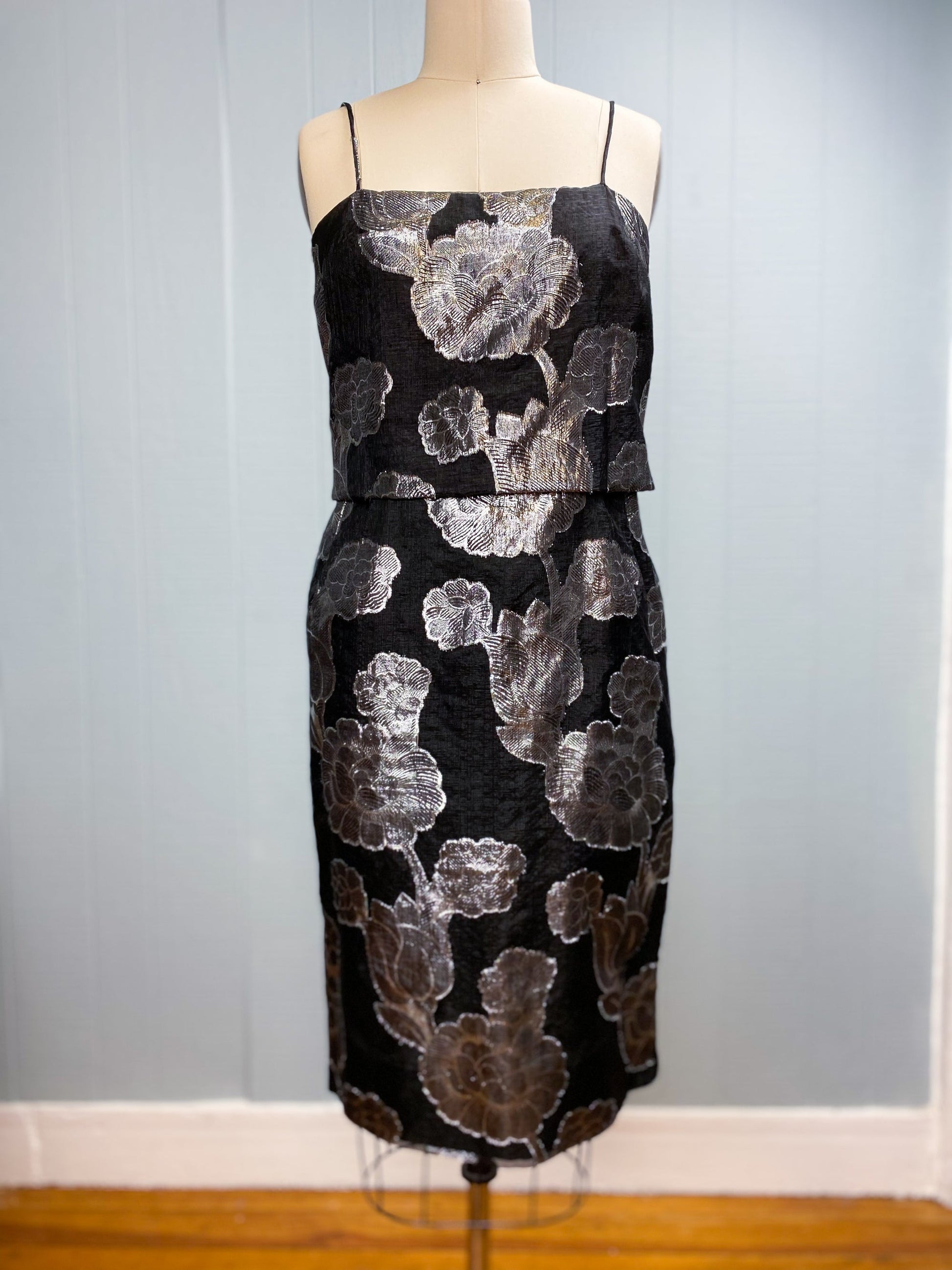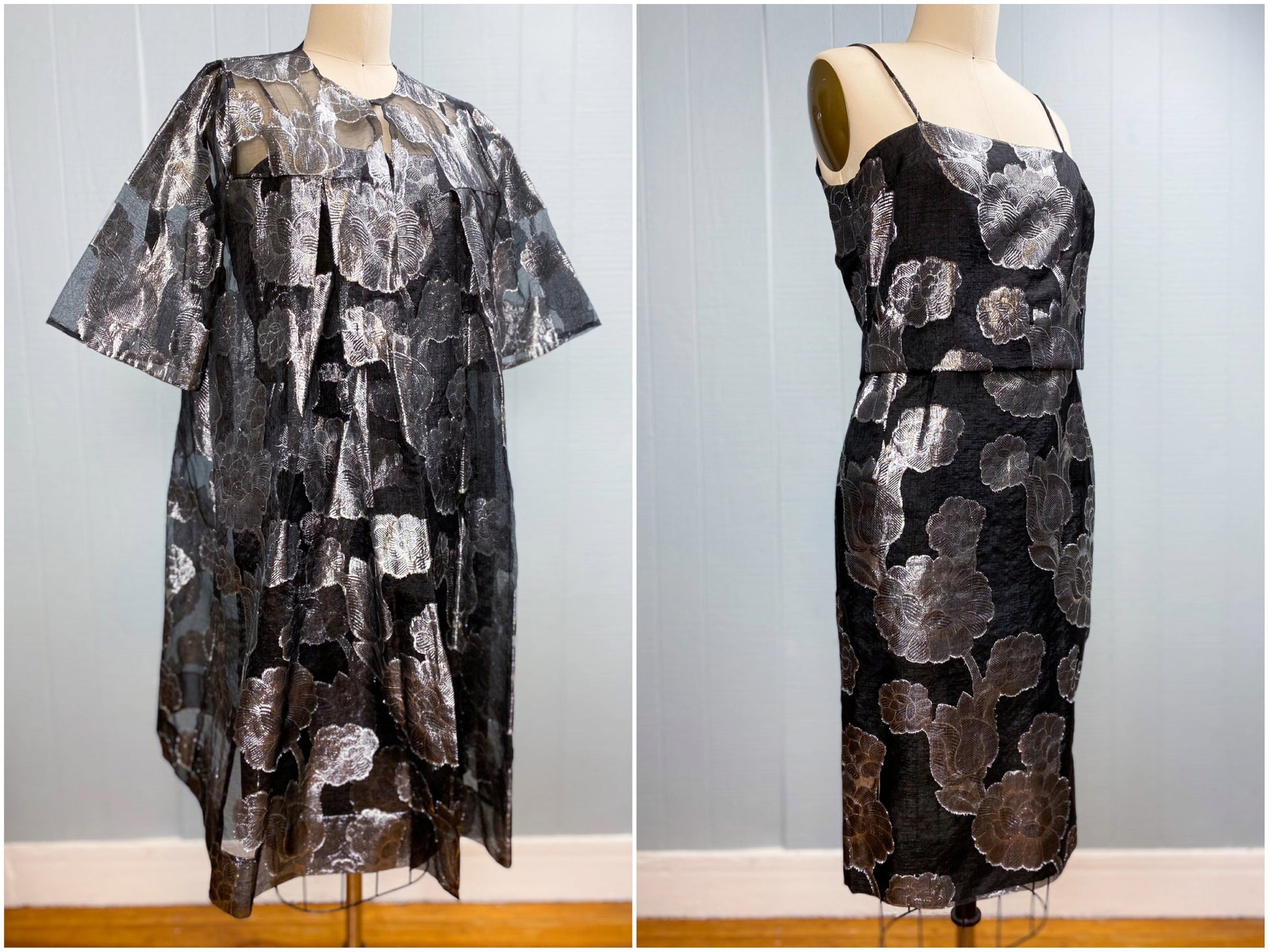 60's Black & Silver Metallic Cocktail Dress & Jacket | M