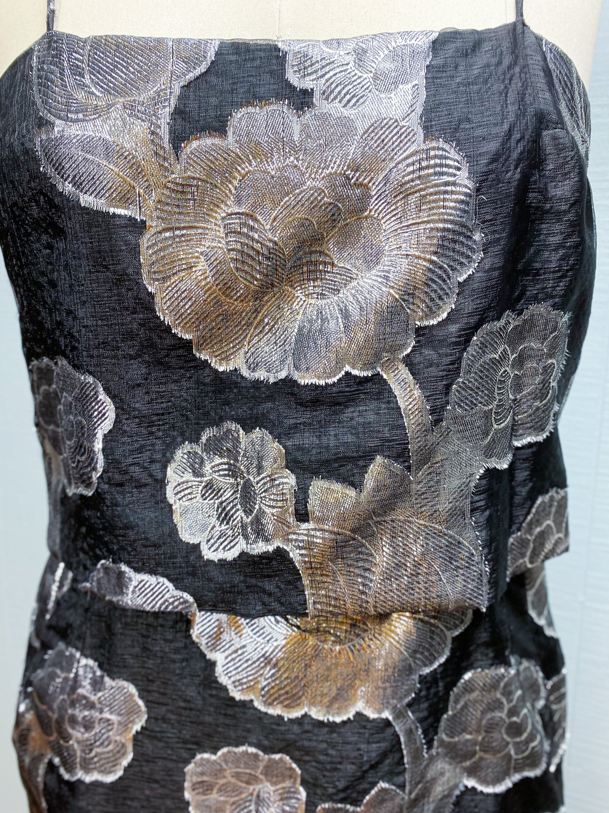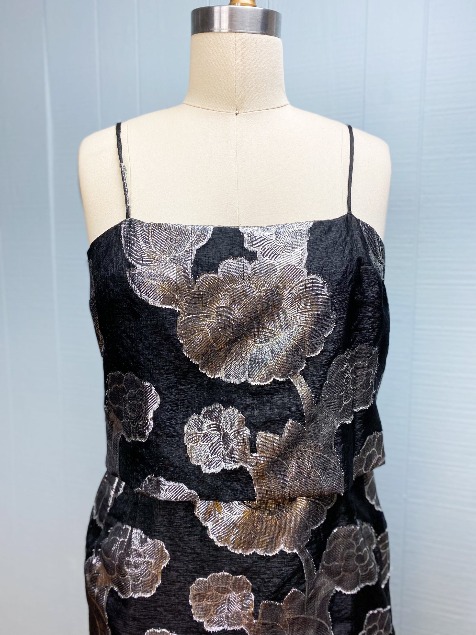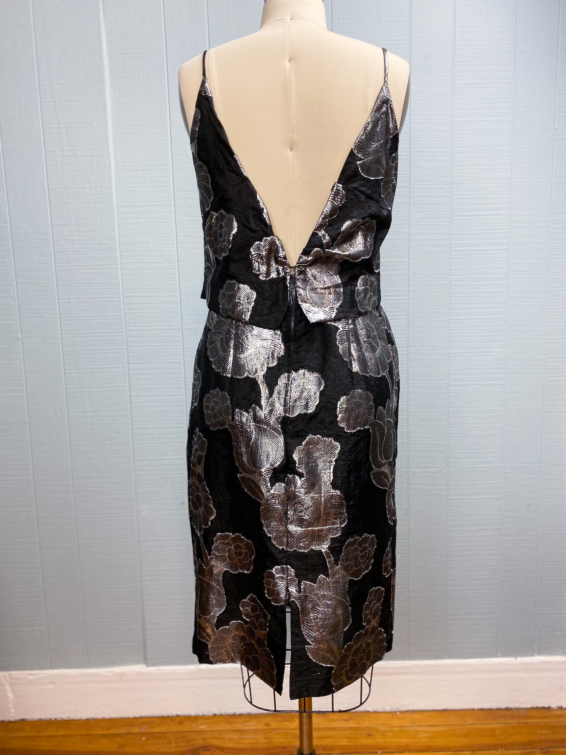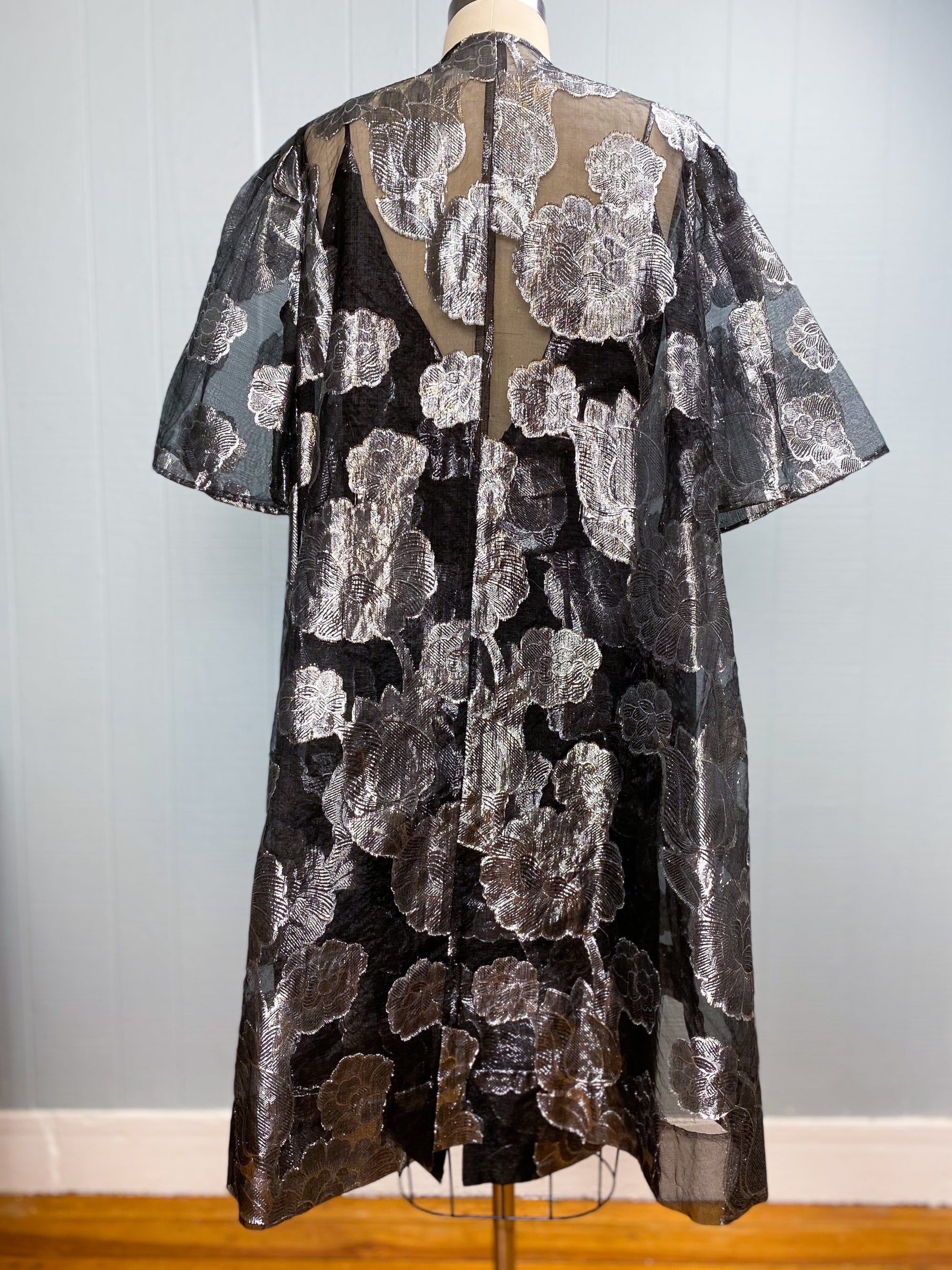 60's Black & Silver Metallic Cocktail Dress & Jacket | M