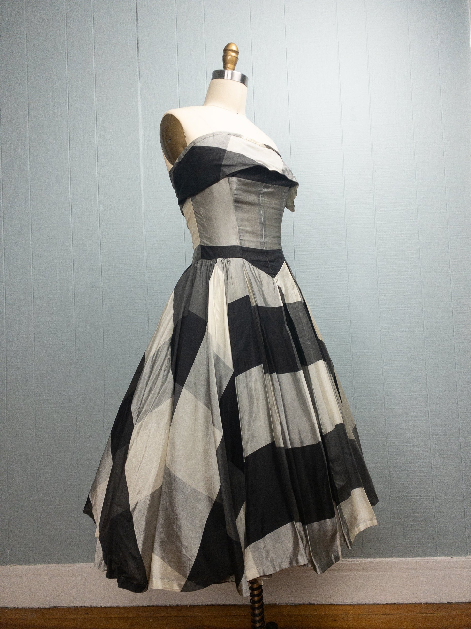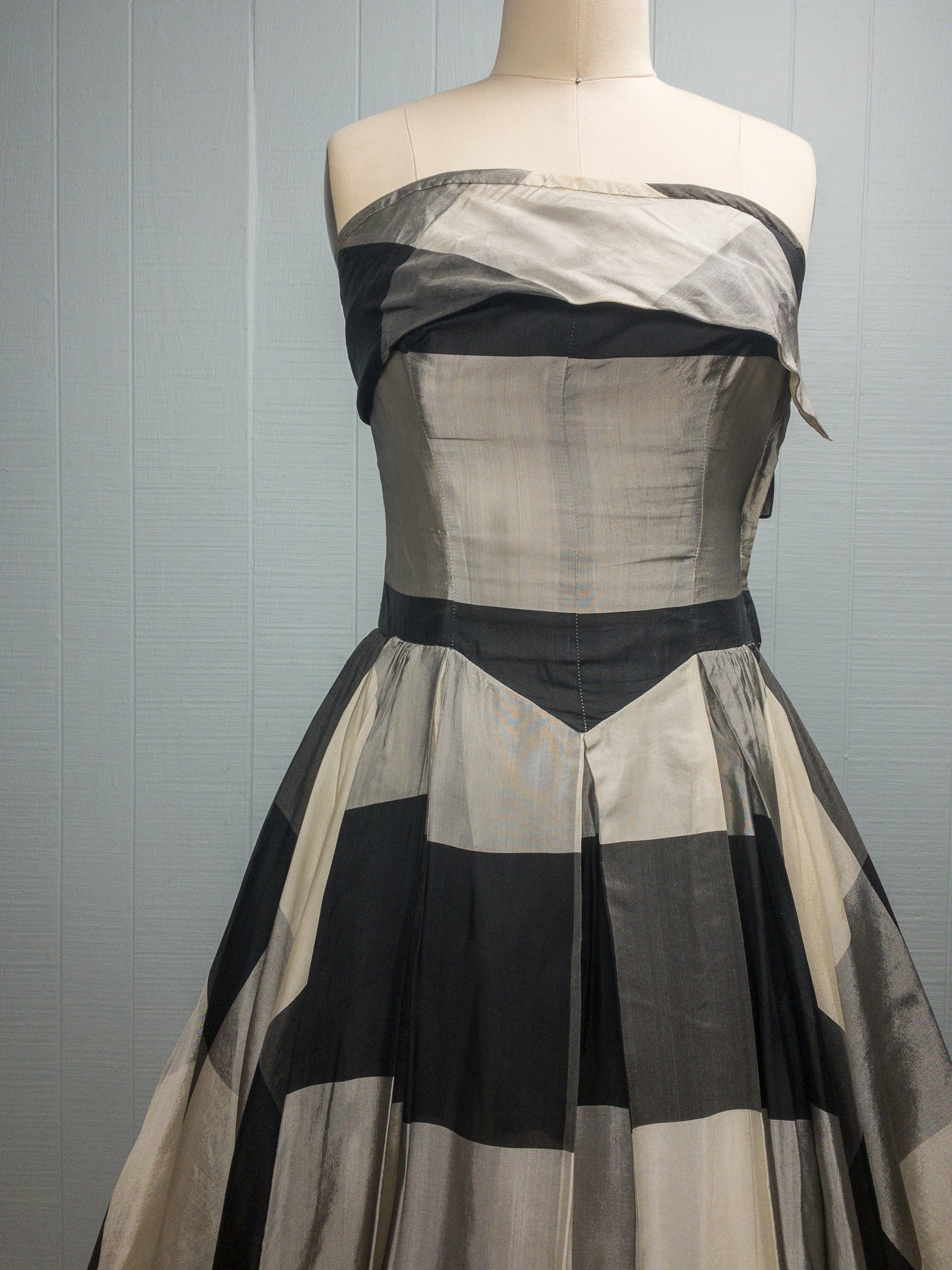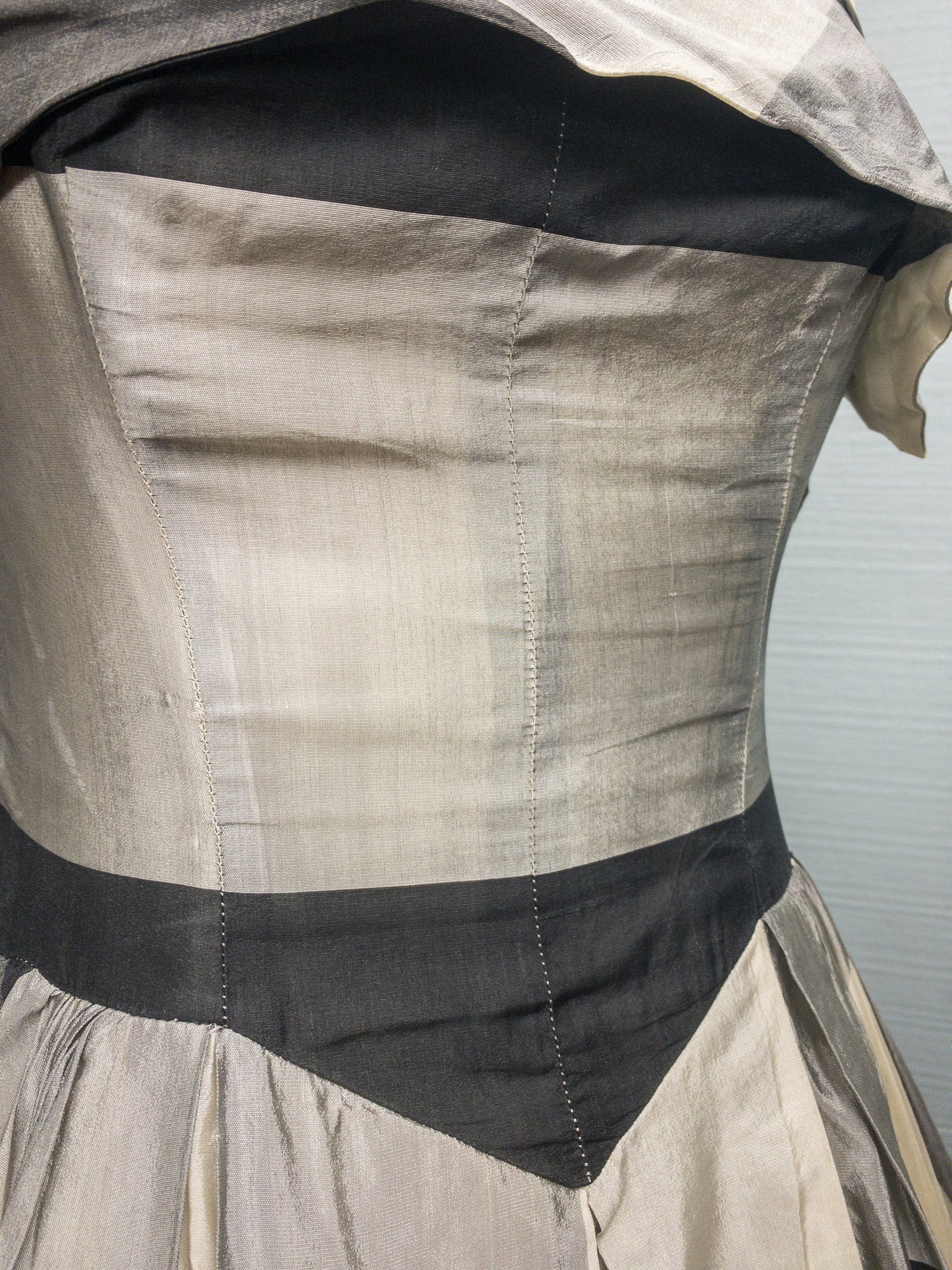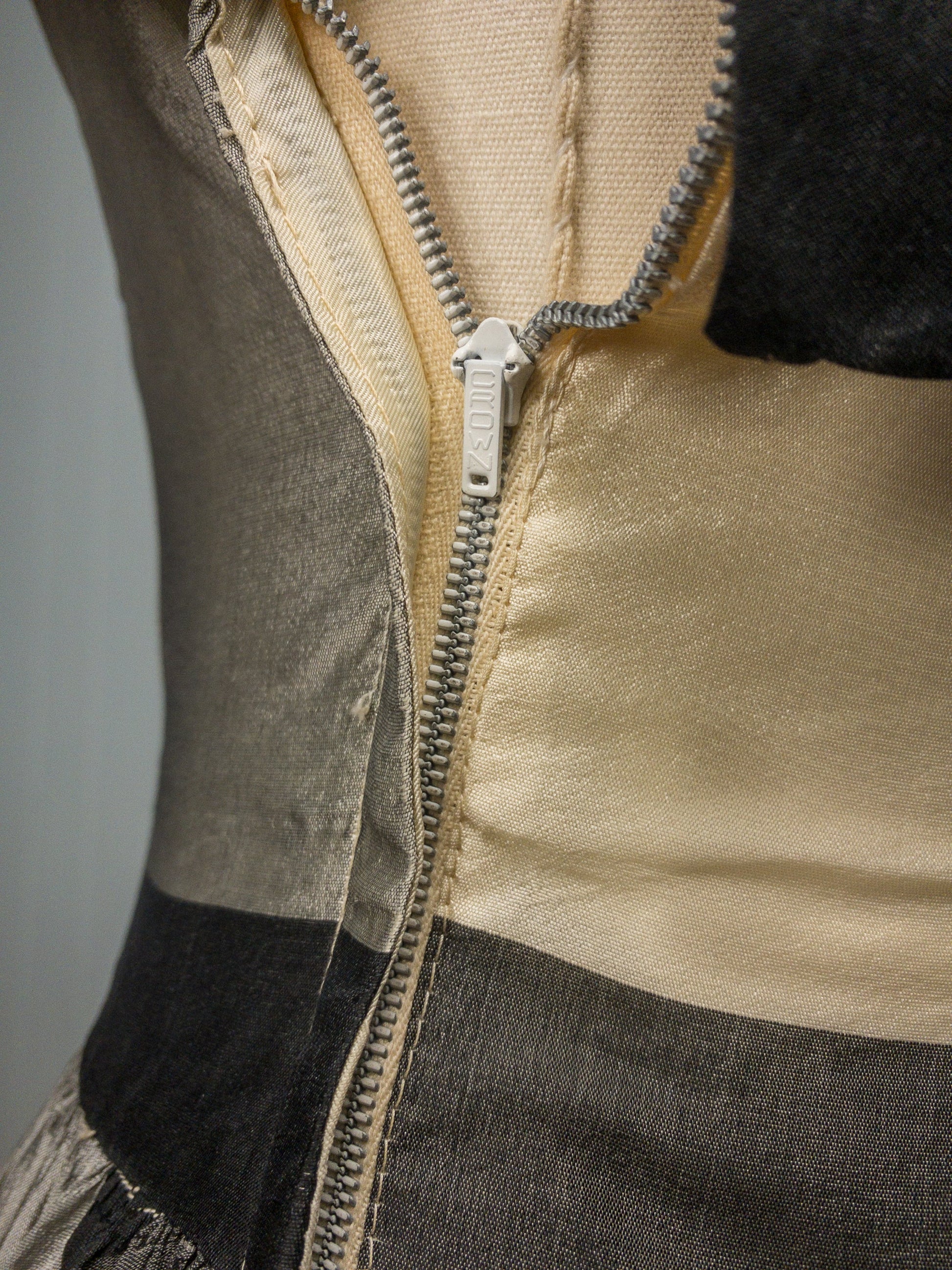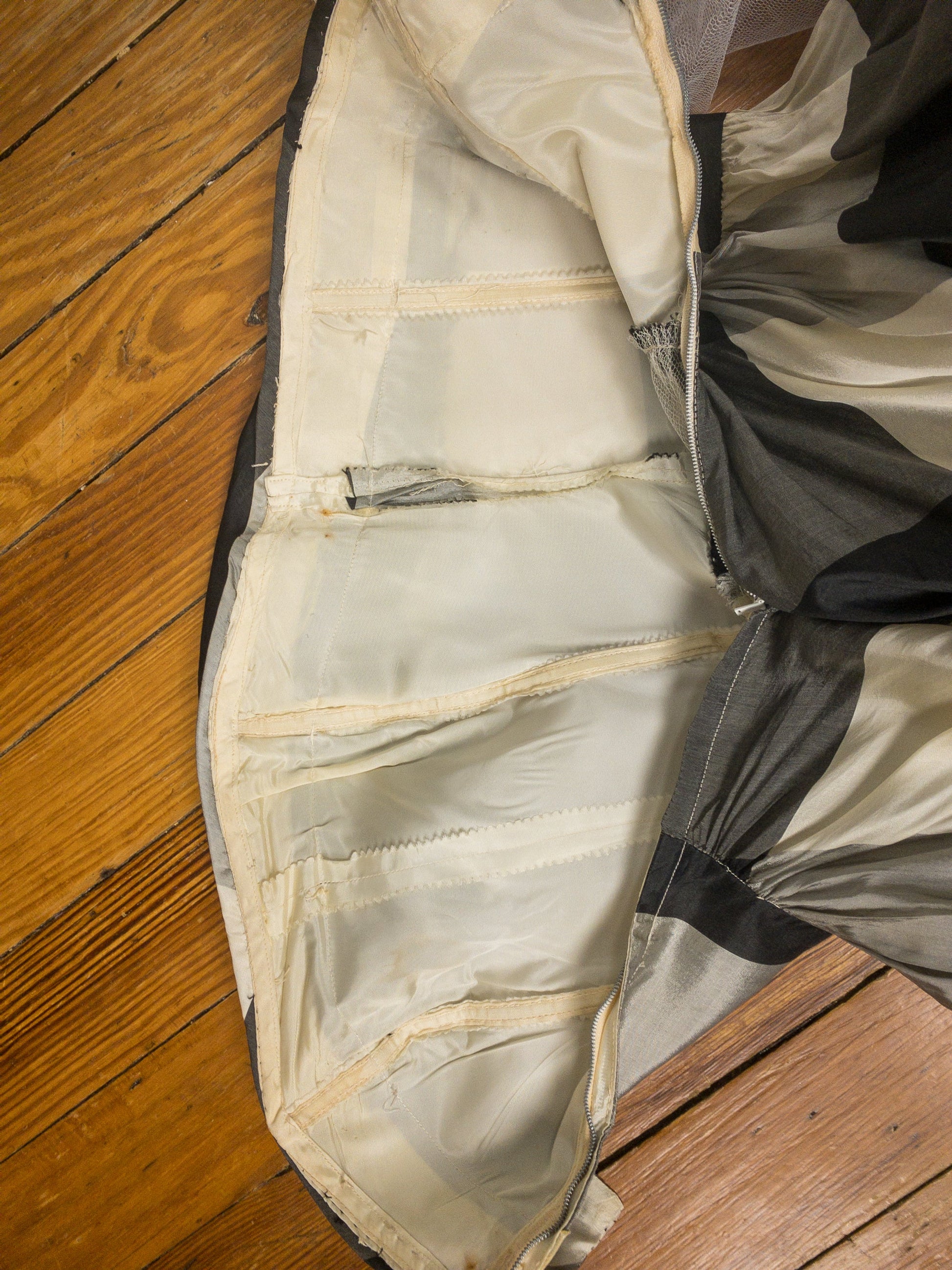 Dress has built in crinoline and boned bodice. This dress was photographed with an additional crinoline underneath.