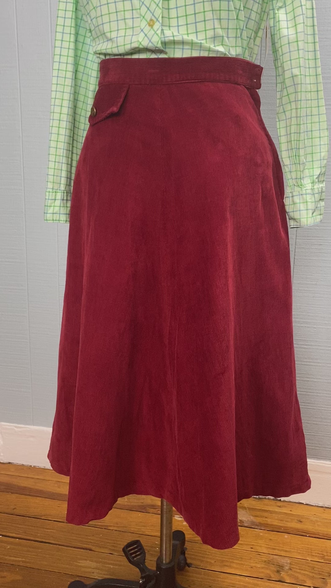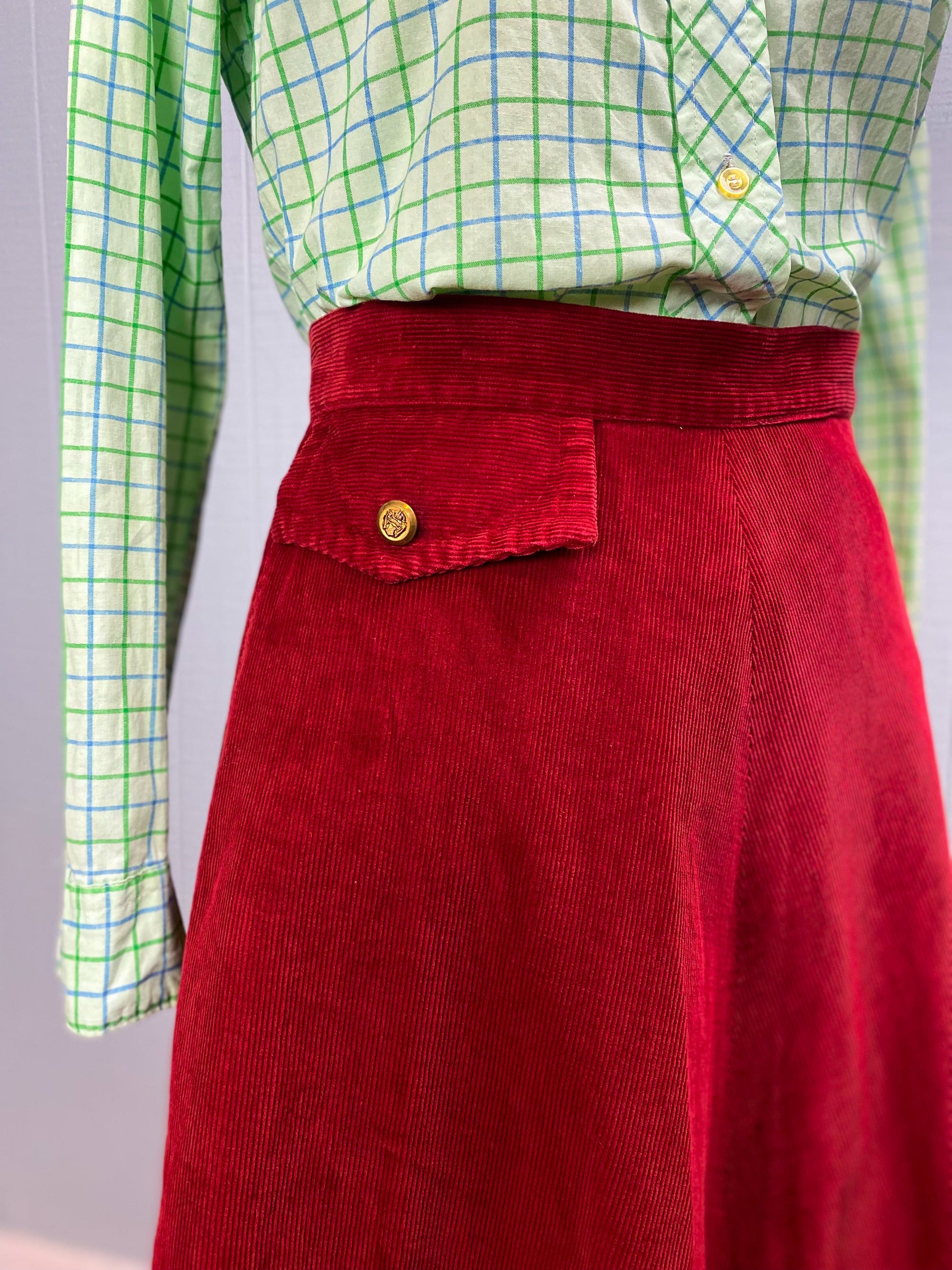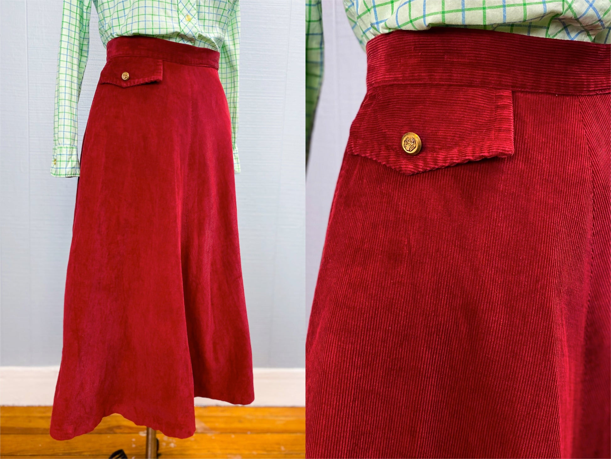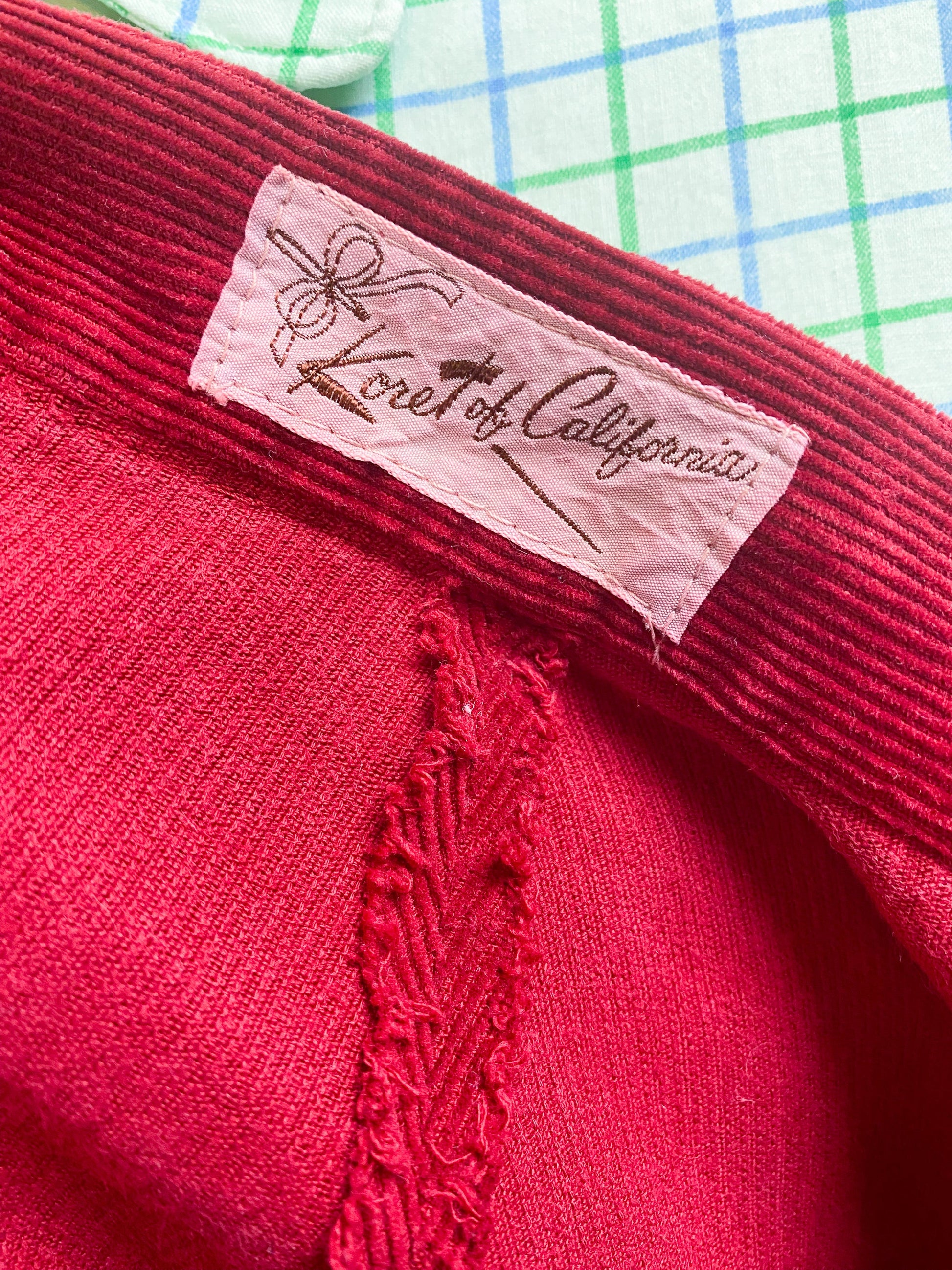 40's 50's Red Corduroy A-line Skirt | W: 24" | Knee Length "Koret of California"