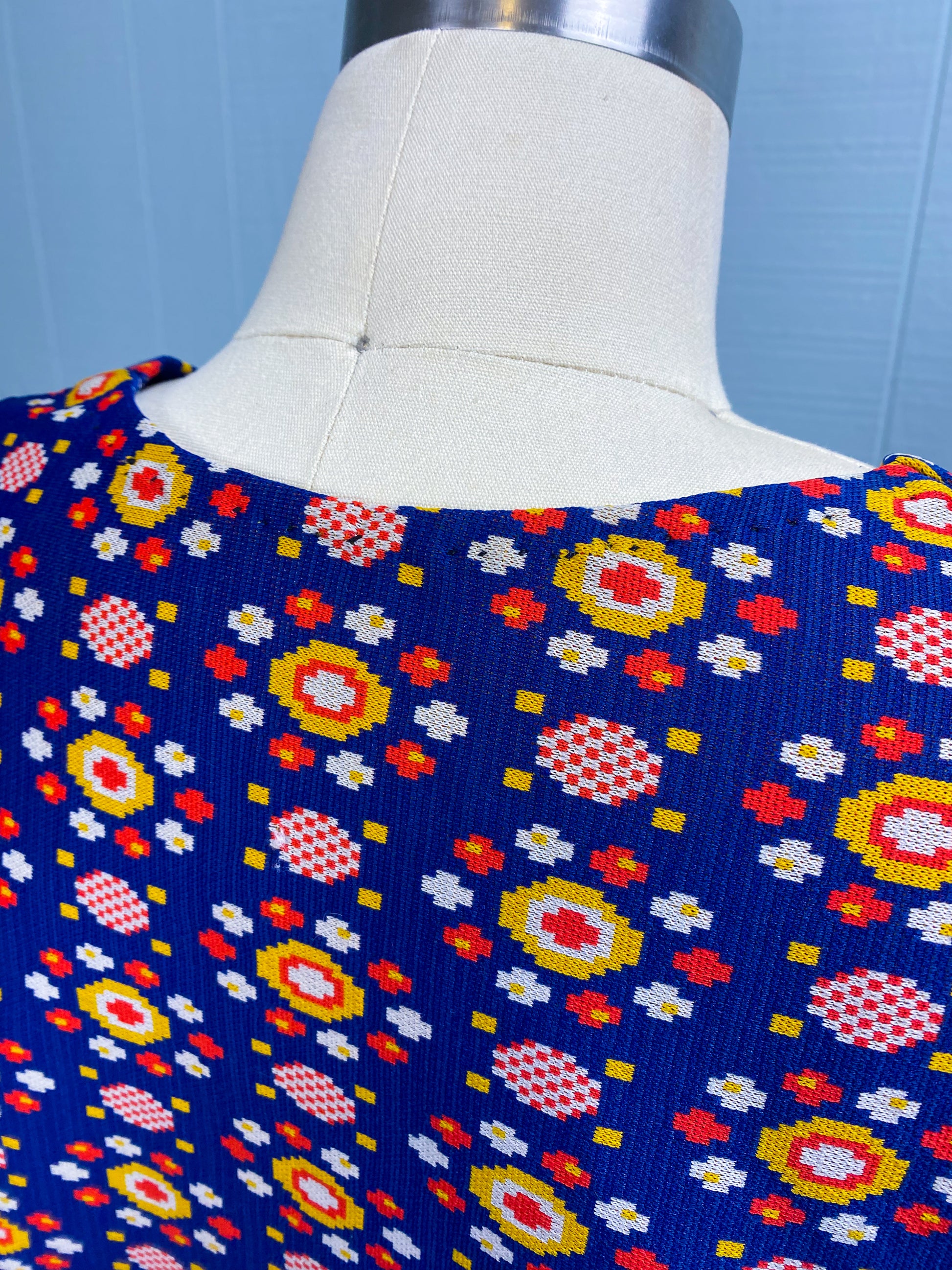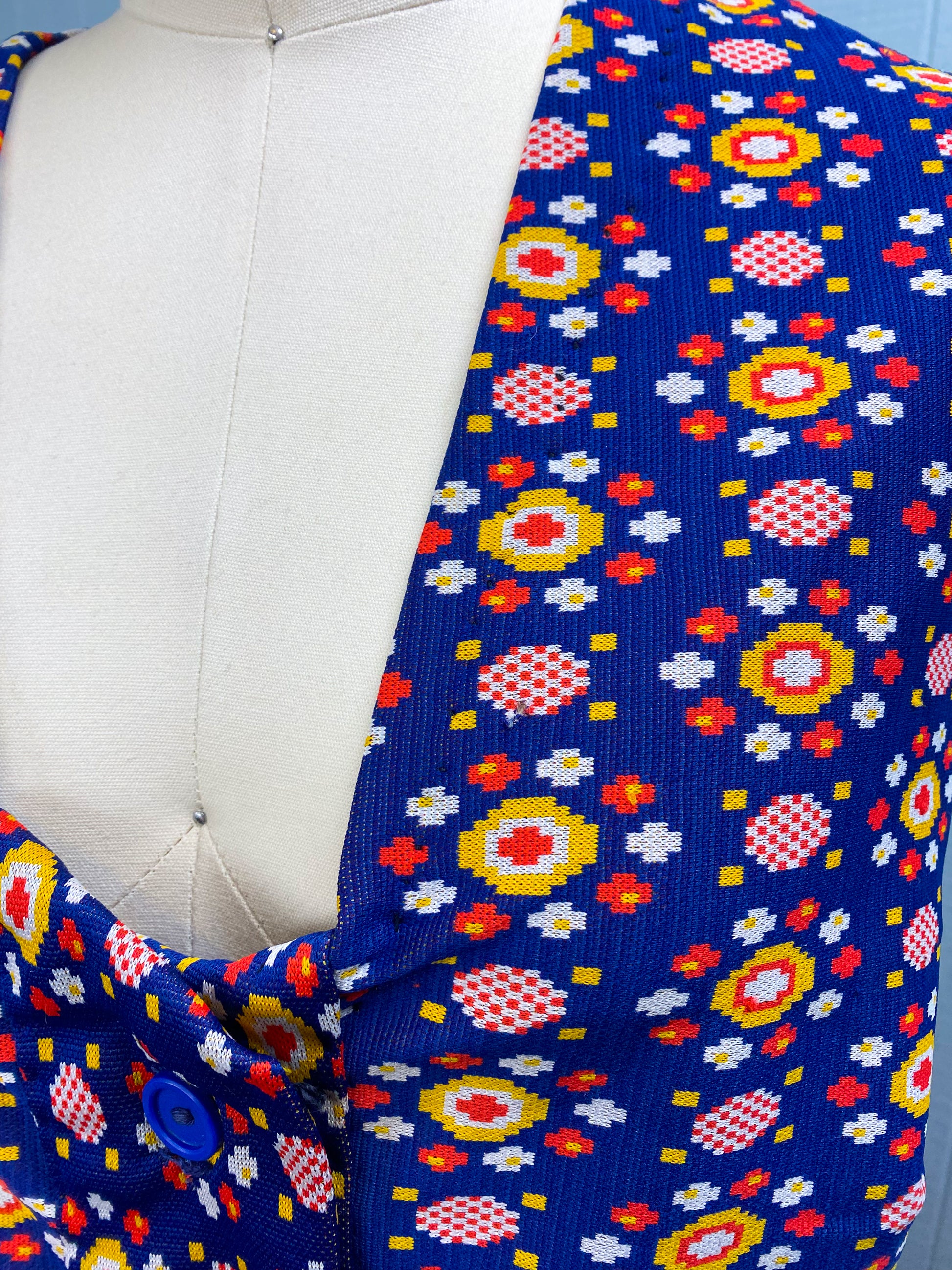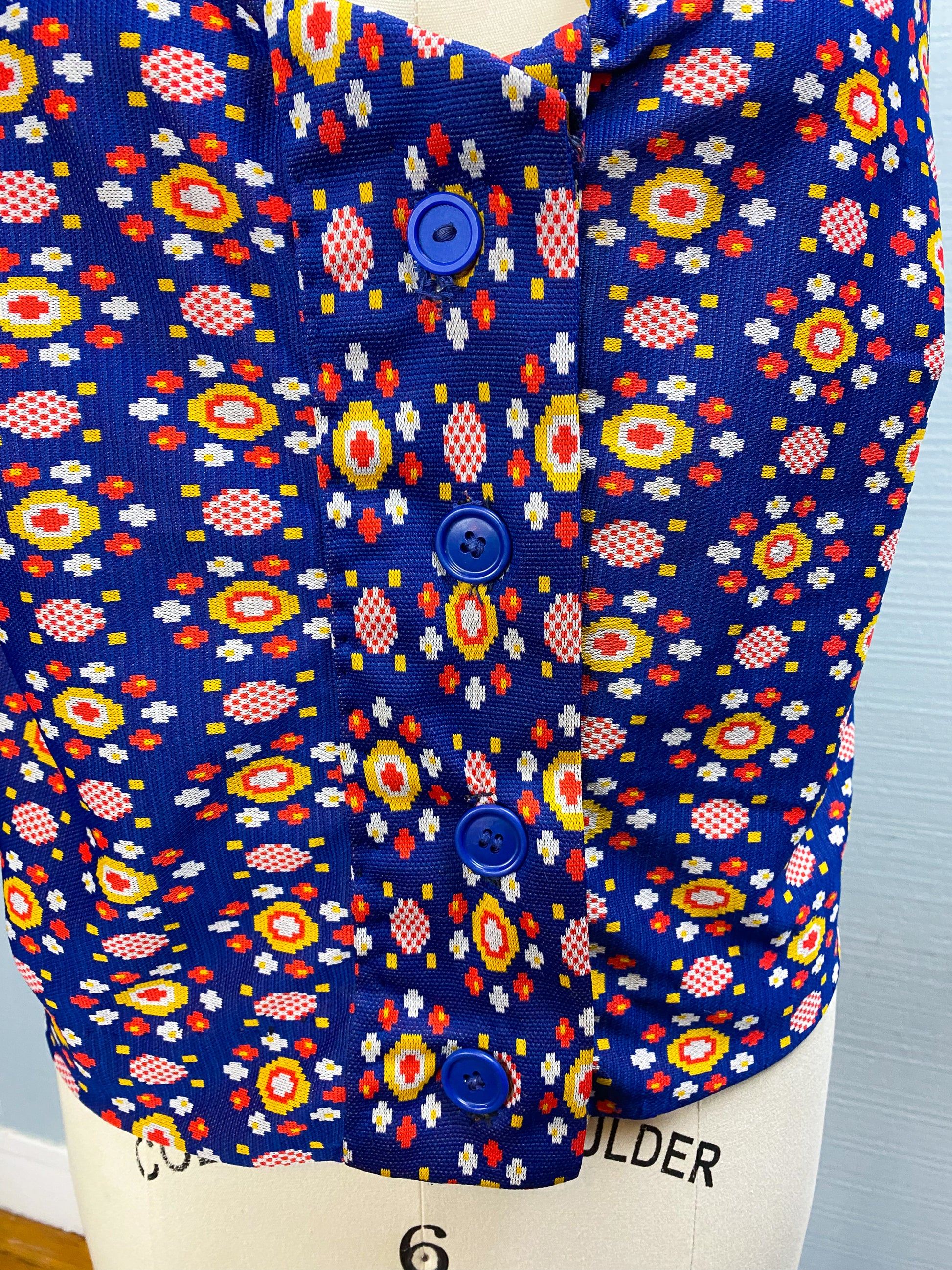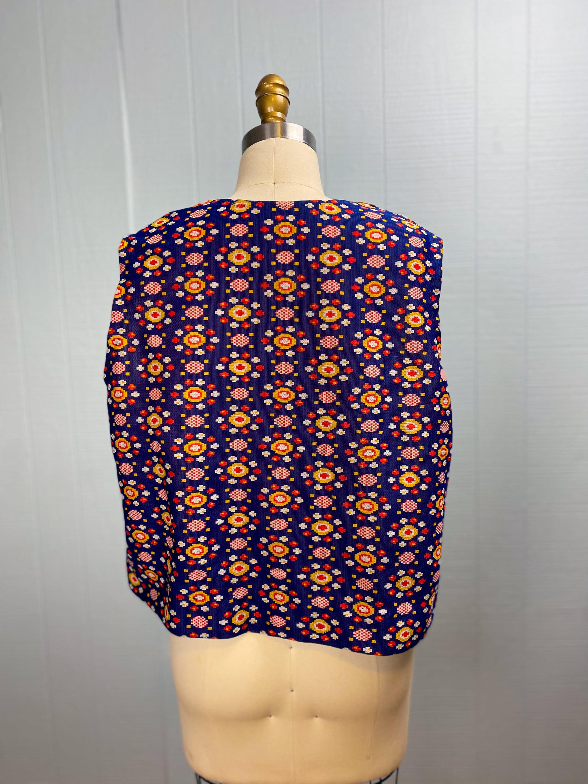 70s Navy Yellow Orange Patterned Button Vest | XL