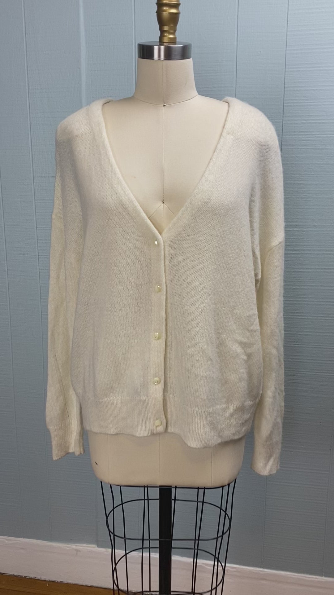 The White Company Ultra Soft Wool V Neck Cream Cardigan
