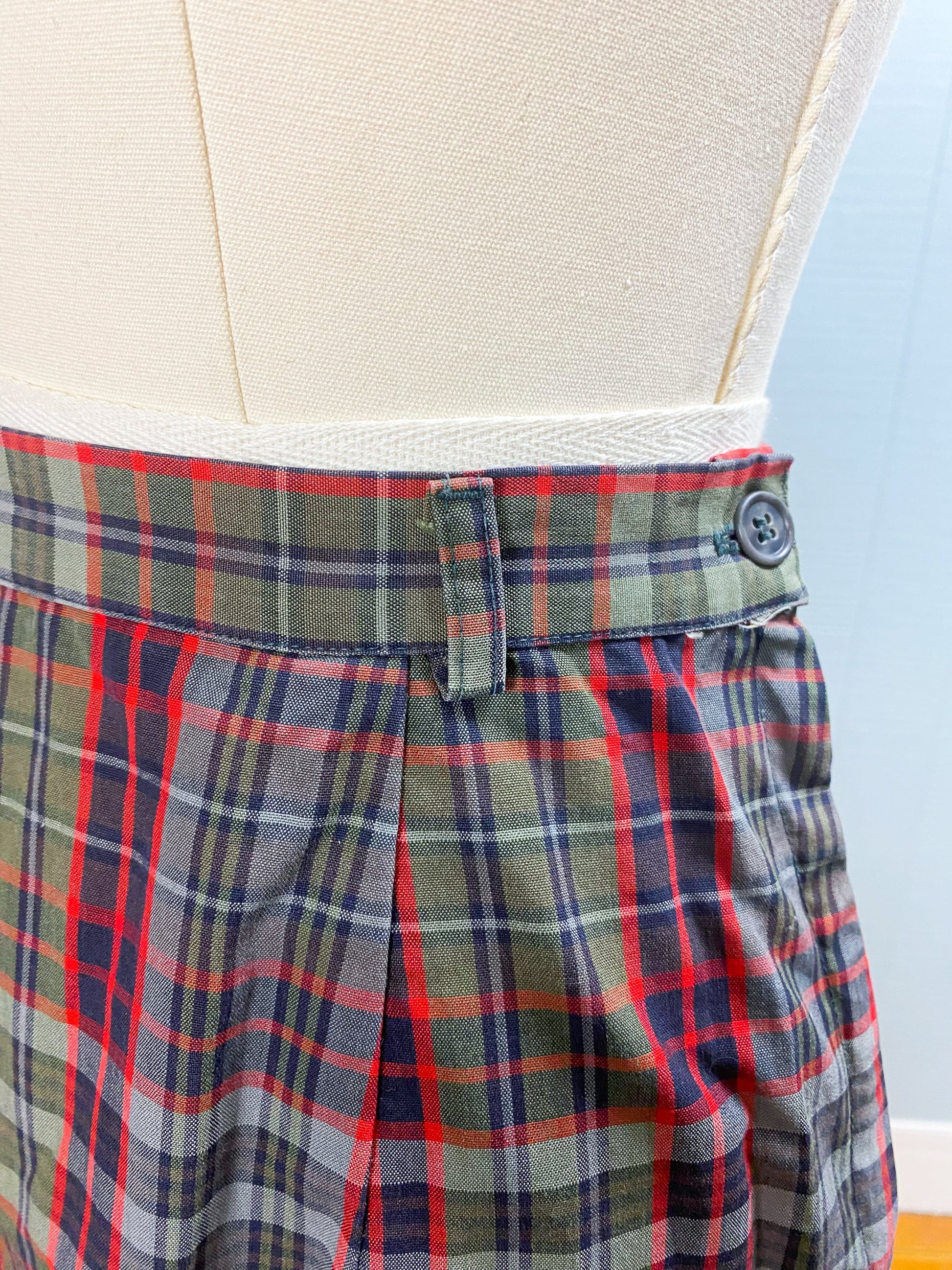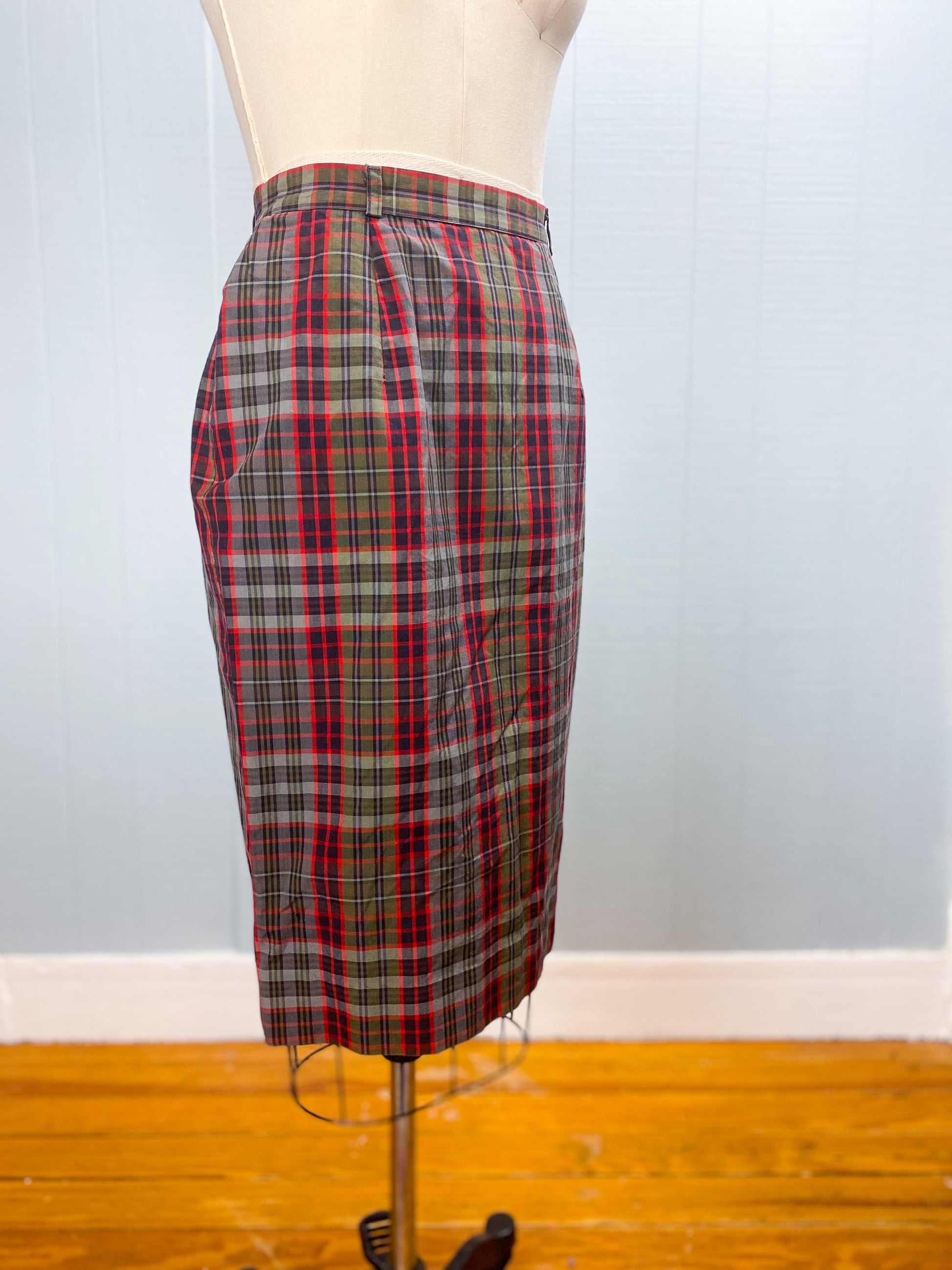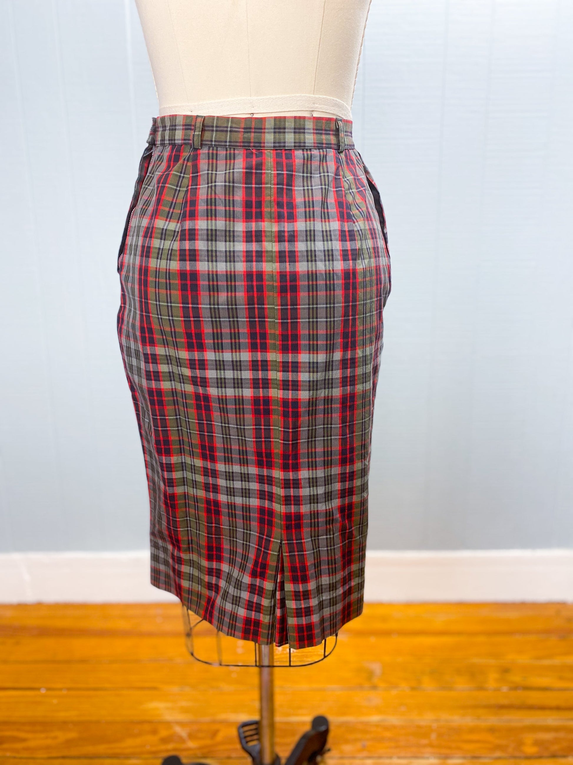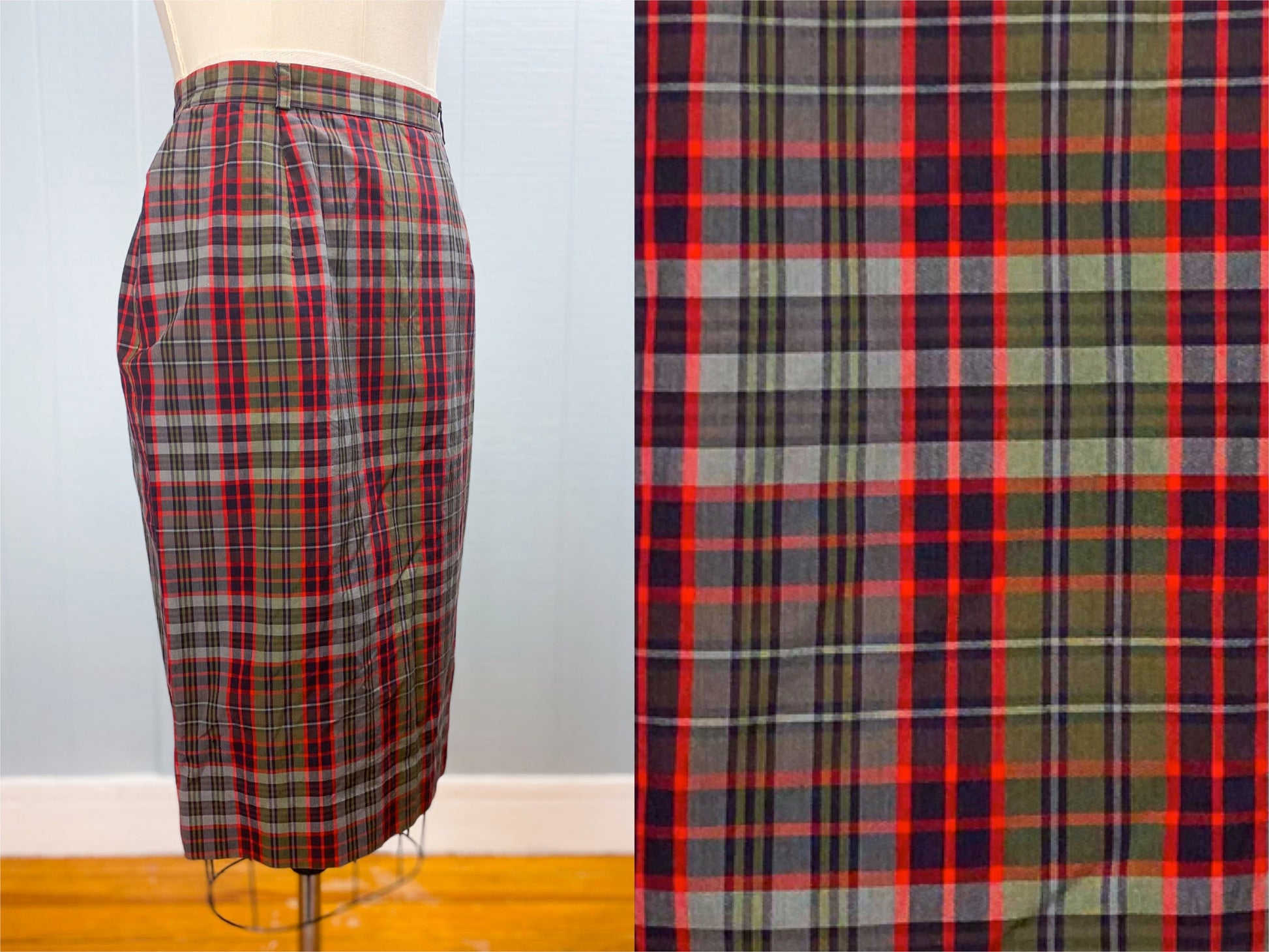 50's Juniorite Grey Green Red & Black Plaid Pencil Skirt | W 26"