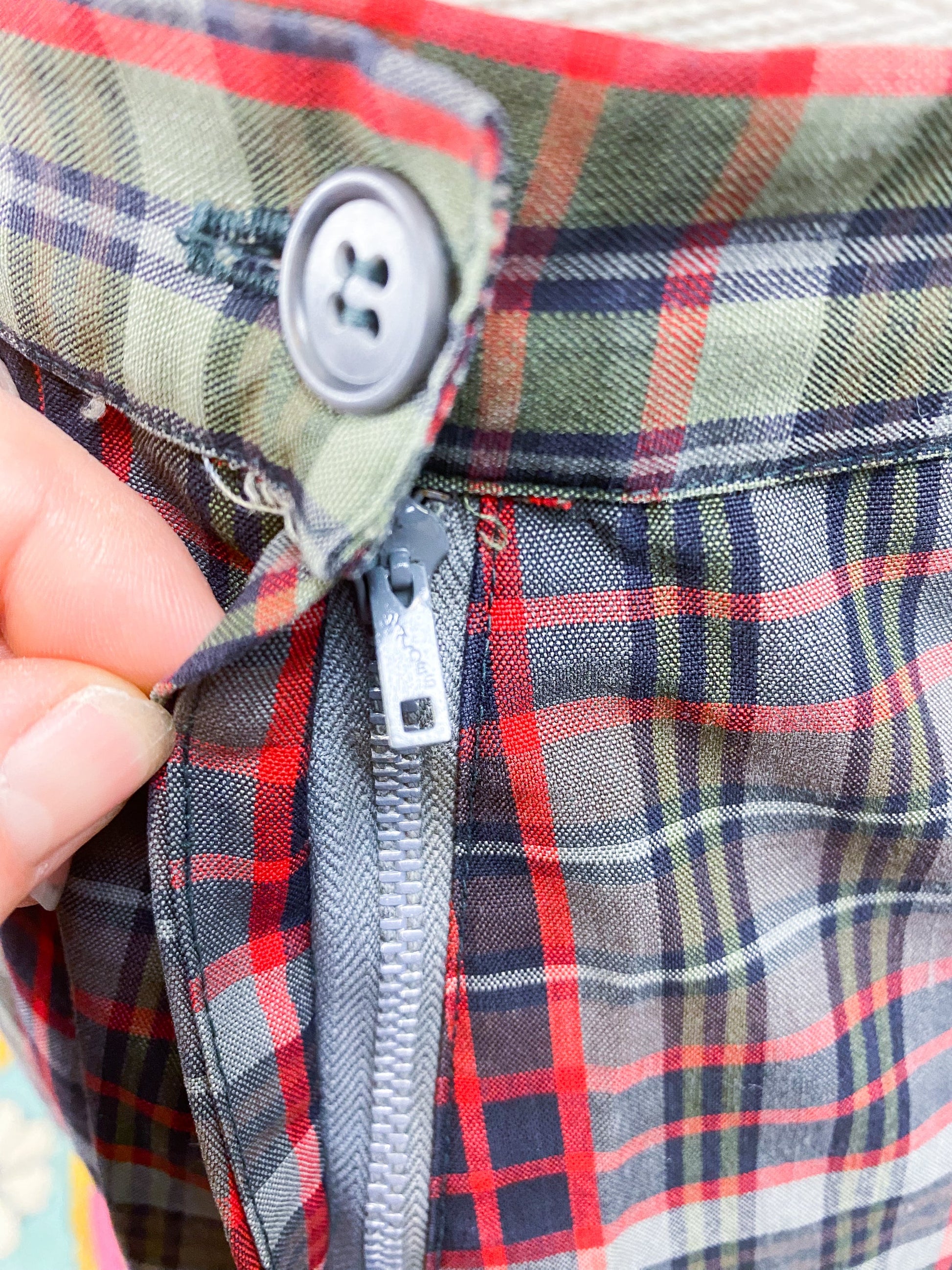 Sweet school girl pencil skirt in this quintessential 50's plaid color way. And it has a pocket to boot!