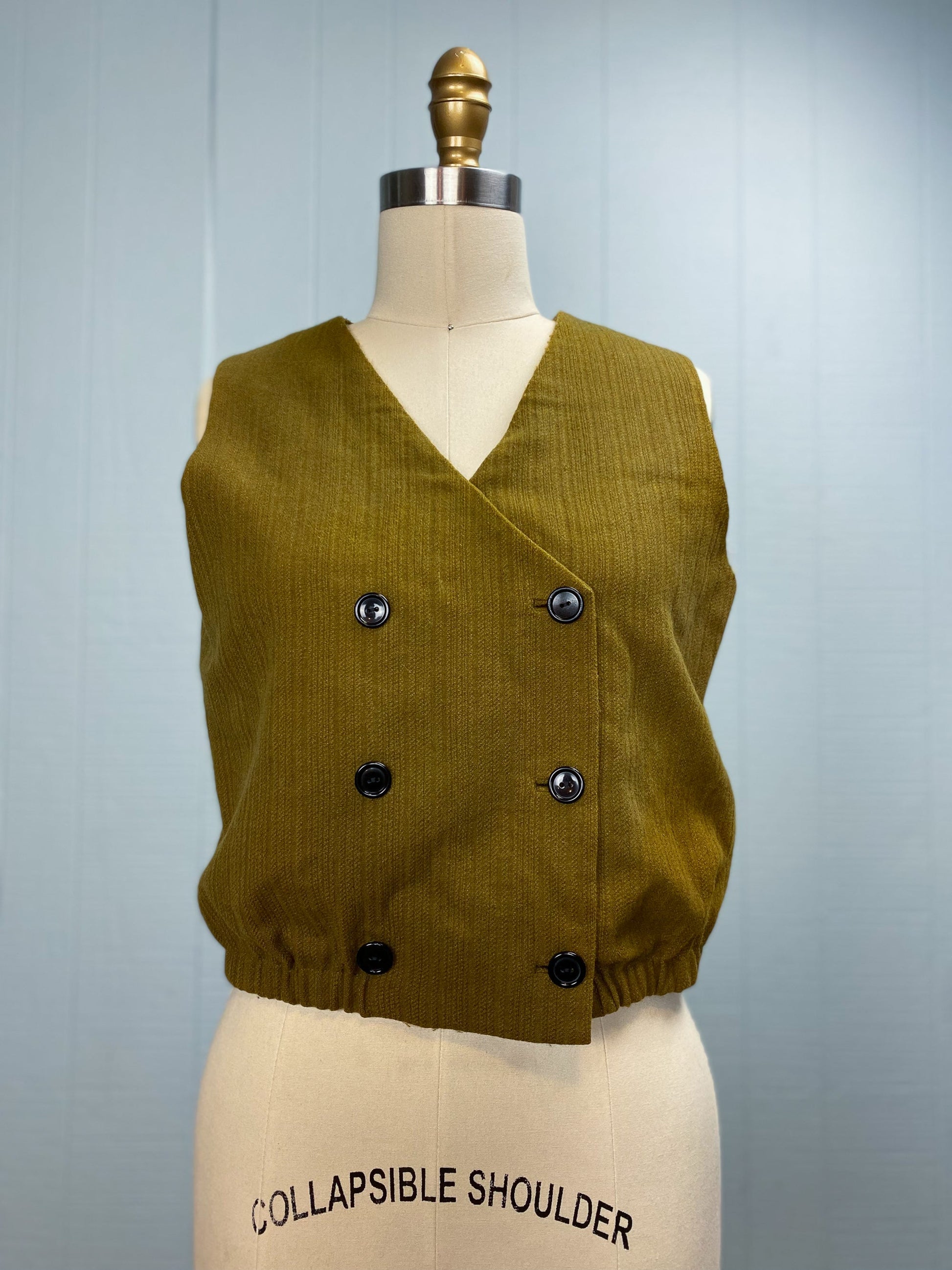 60's Olive Green Cropped Double Breast Vest | M/L