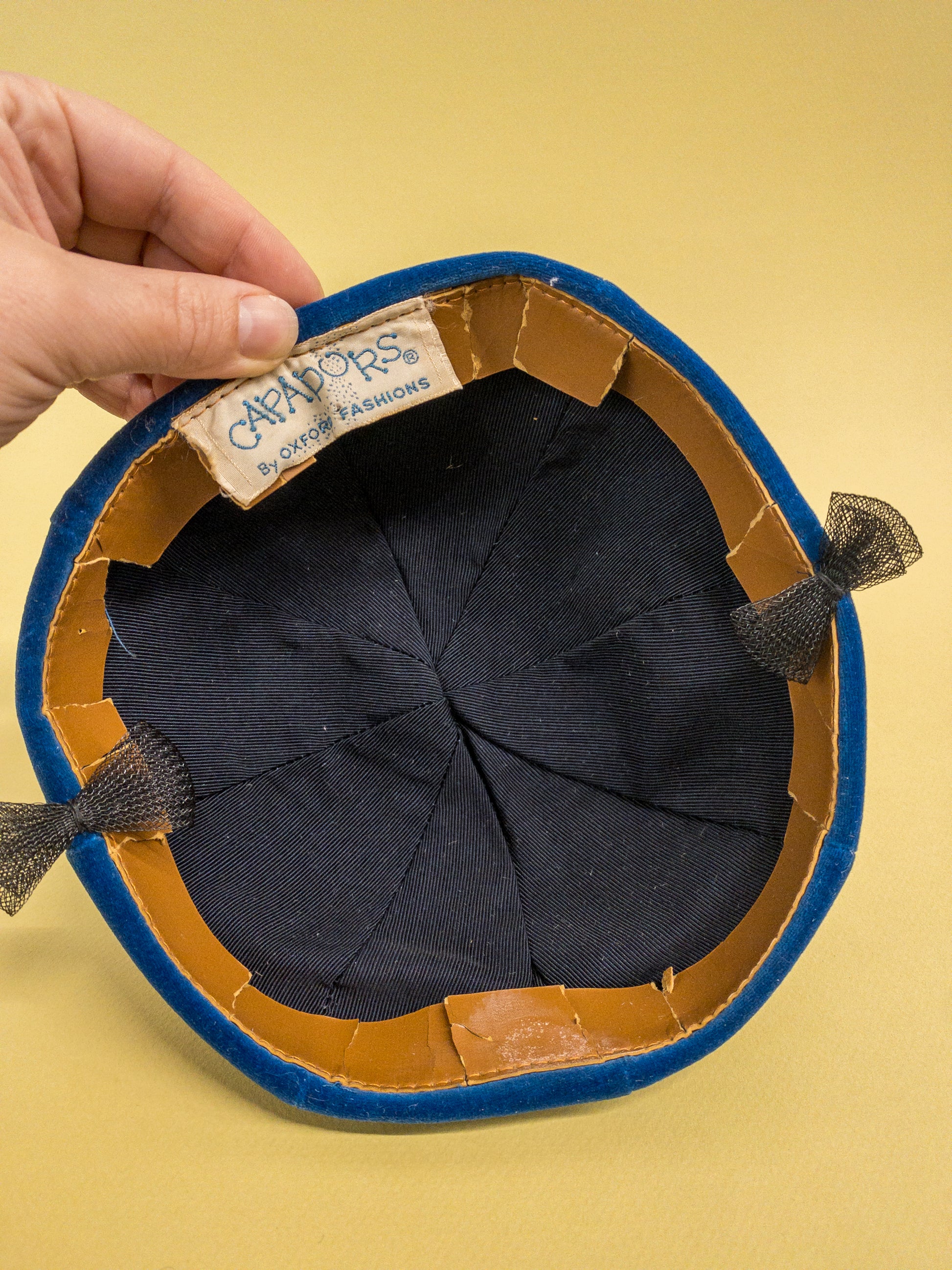 50’s 60's Mrs. Maisel Royal Blue Velvet 8 Panel Juliet Calot Cap Beanie