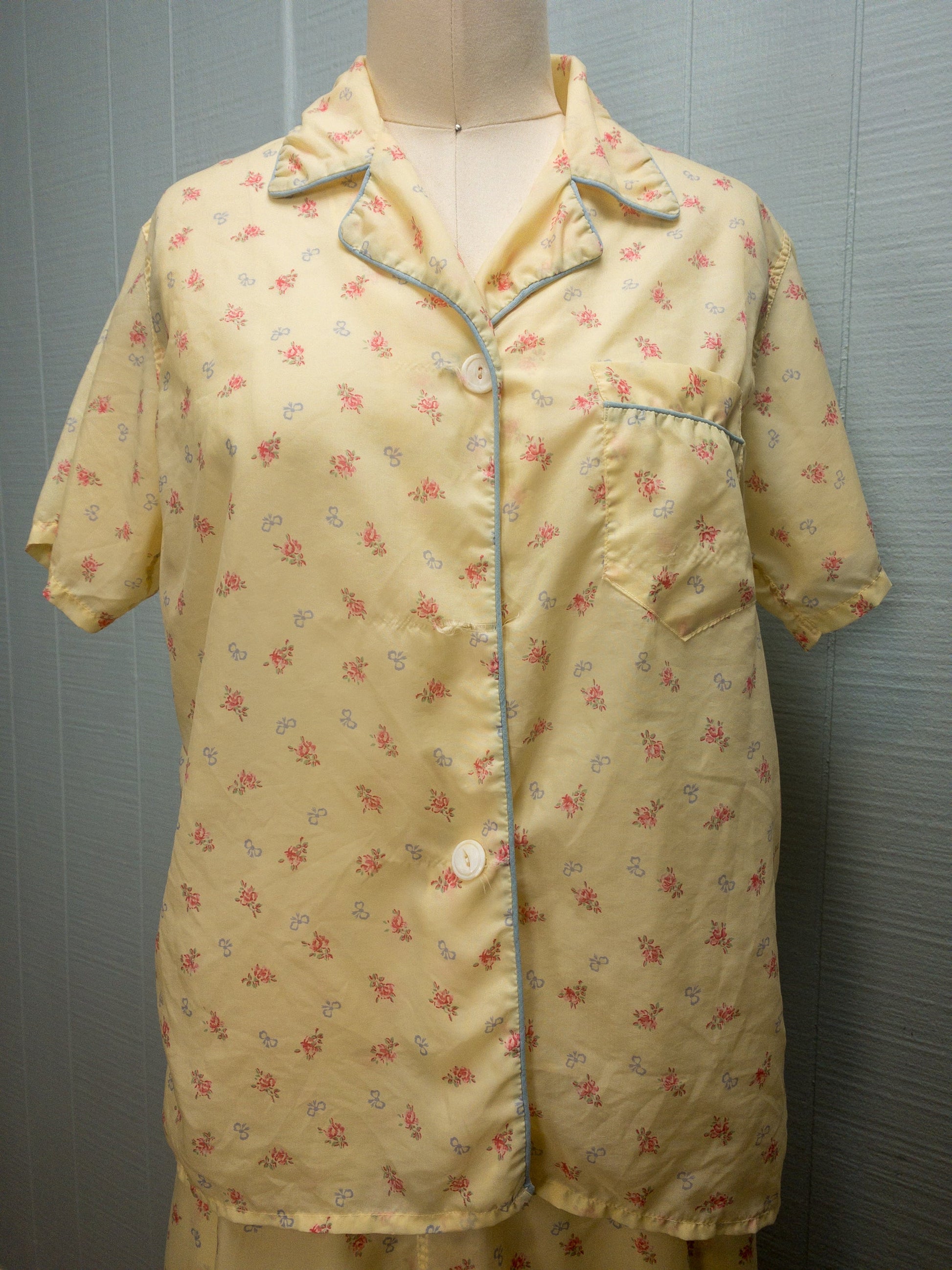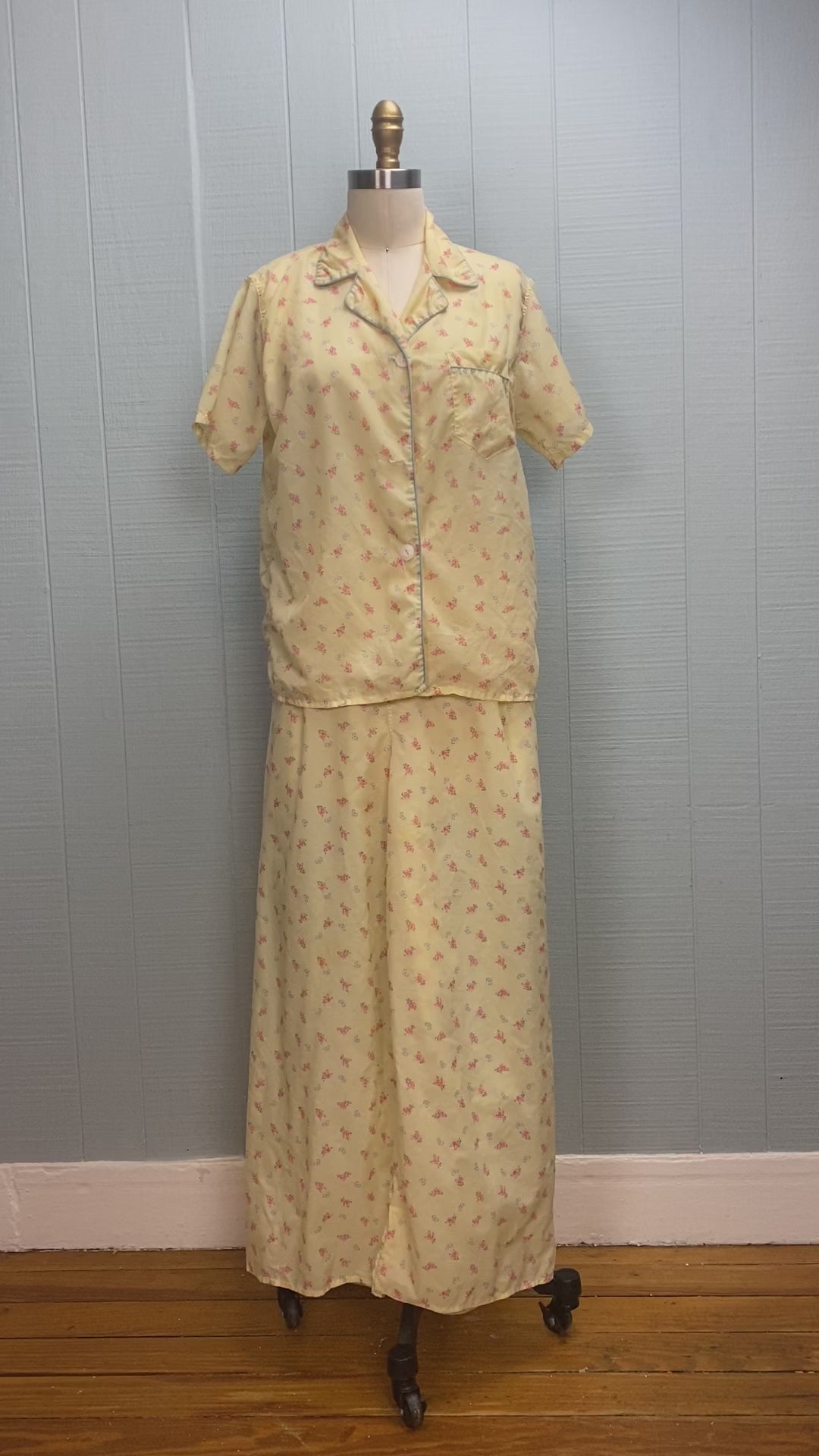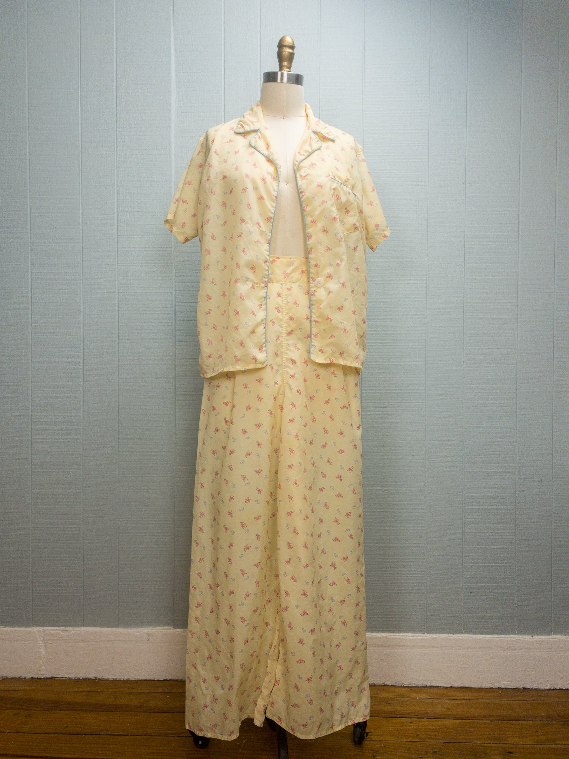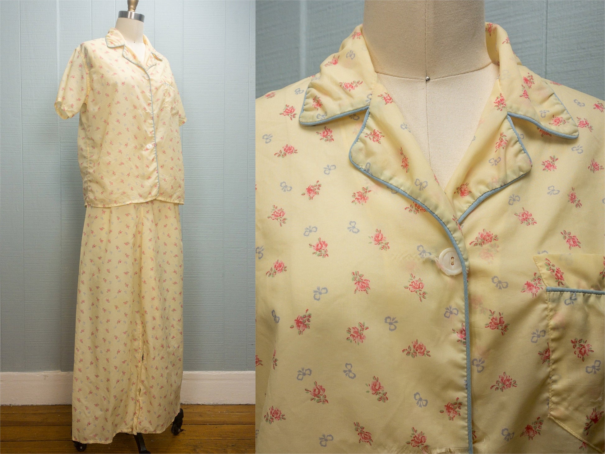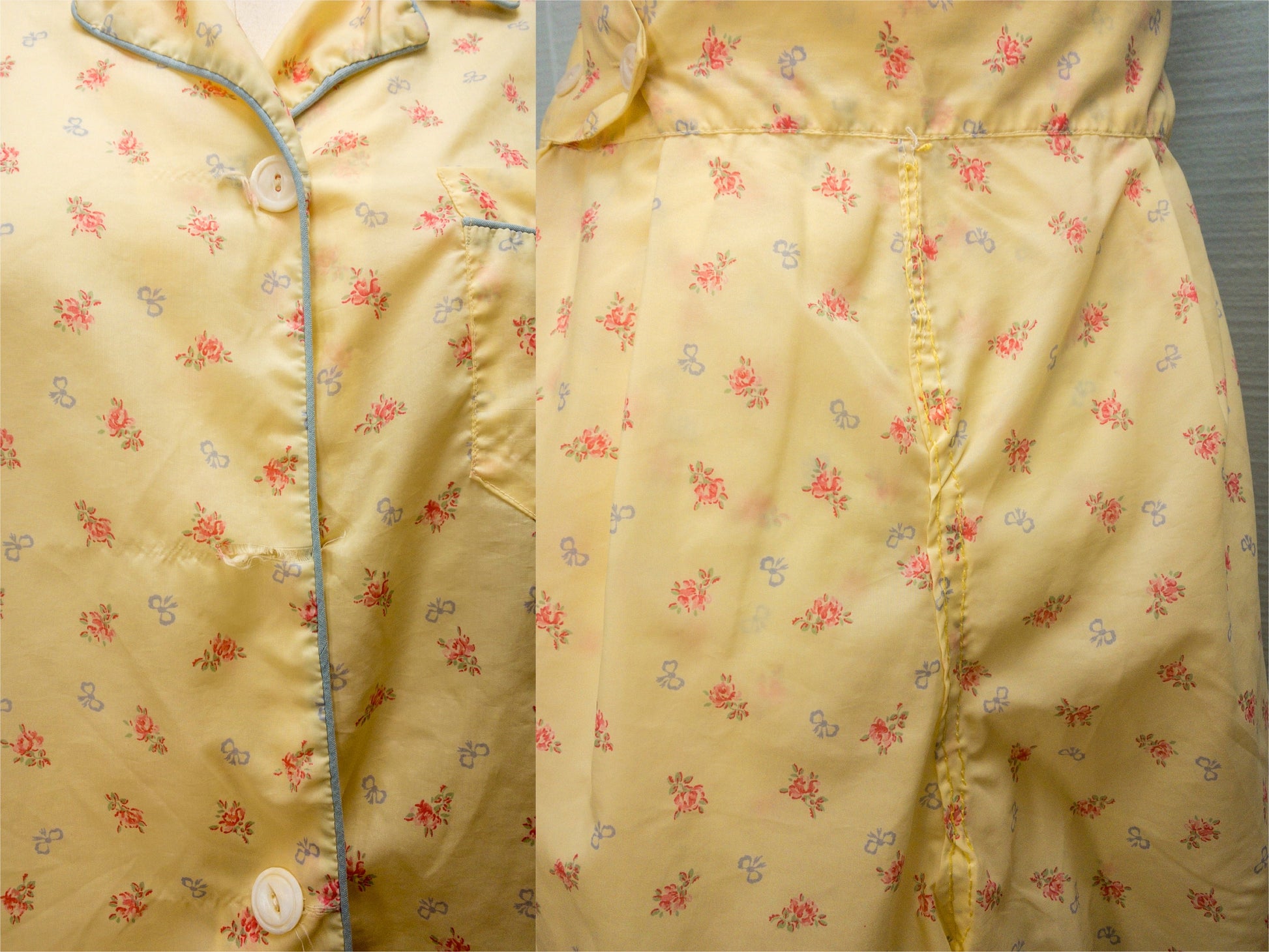 40's 50's Bows & Flowers Yellow Pajama Set | M
