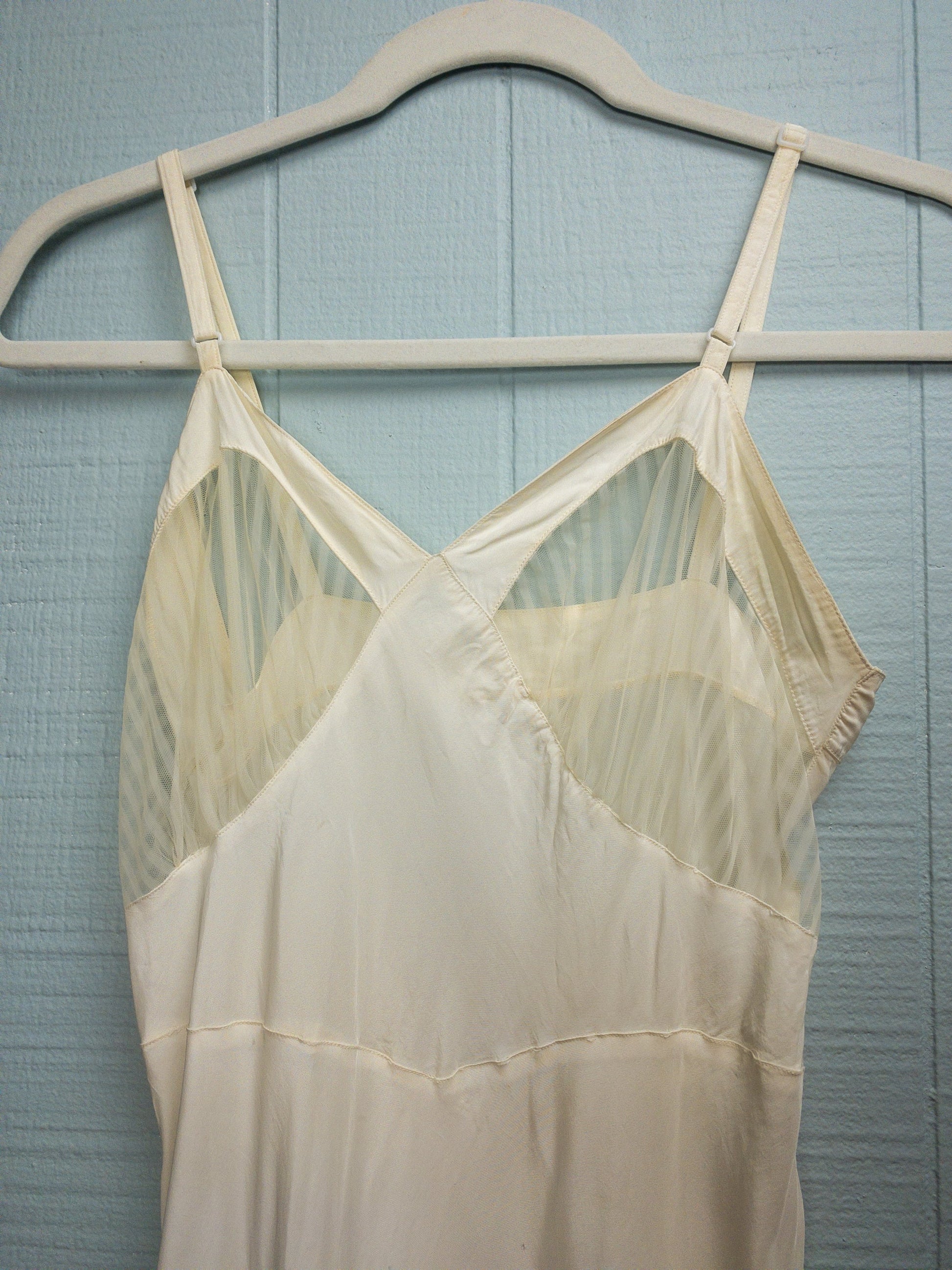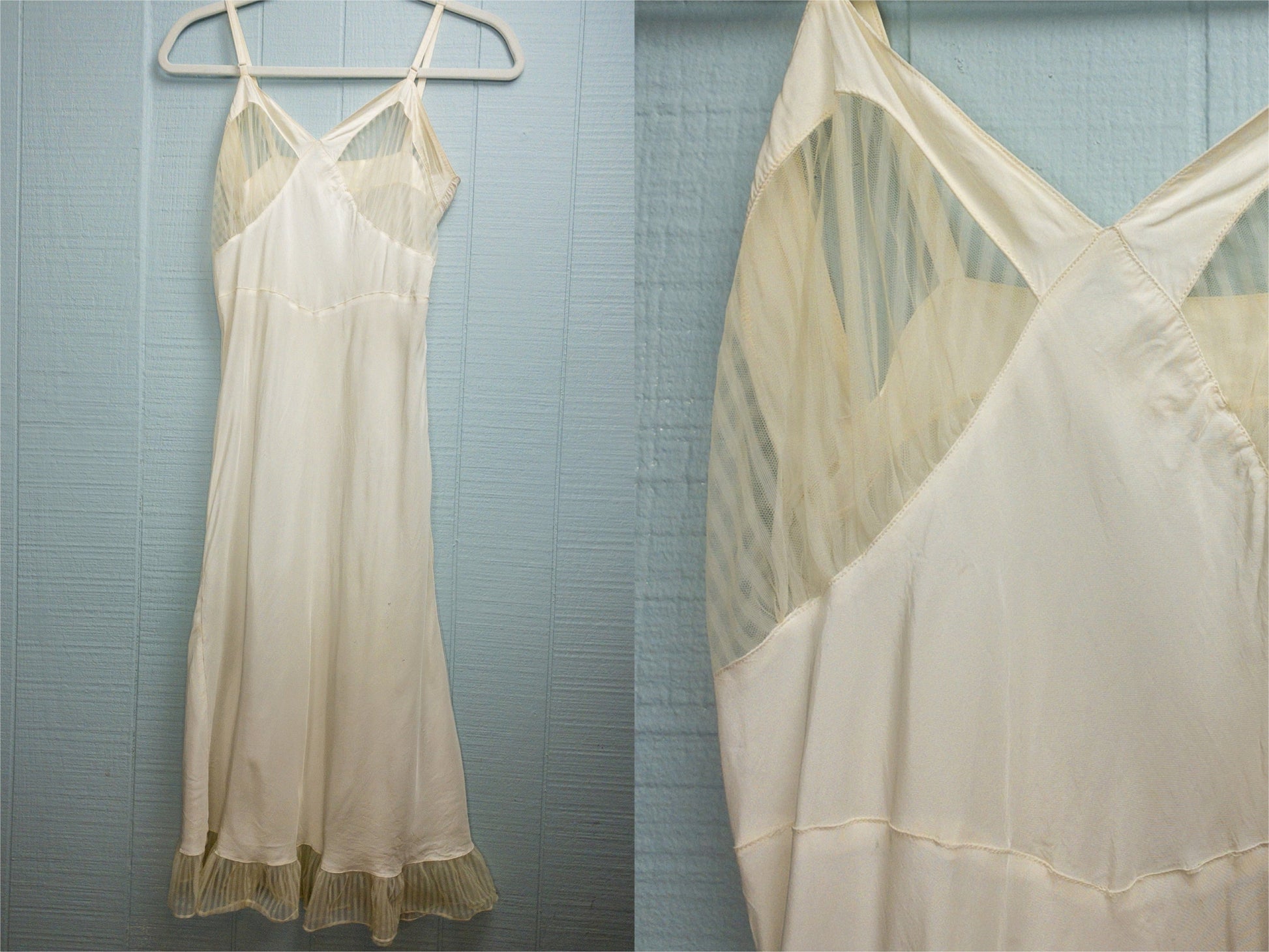 50's White Bias Cut Striped Sheer Slip | XXS/XS