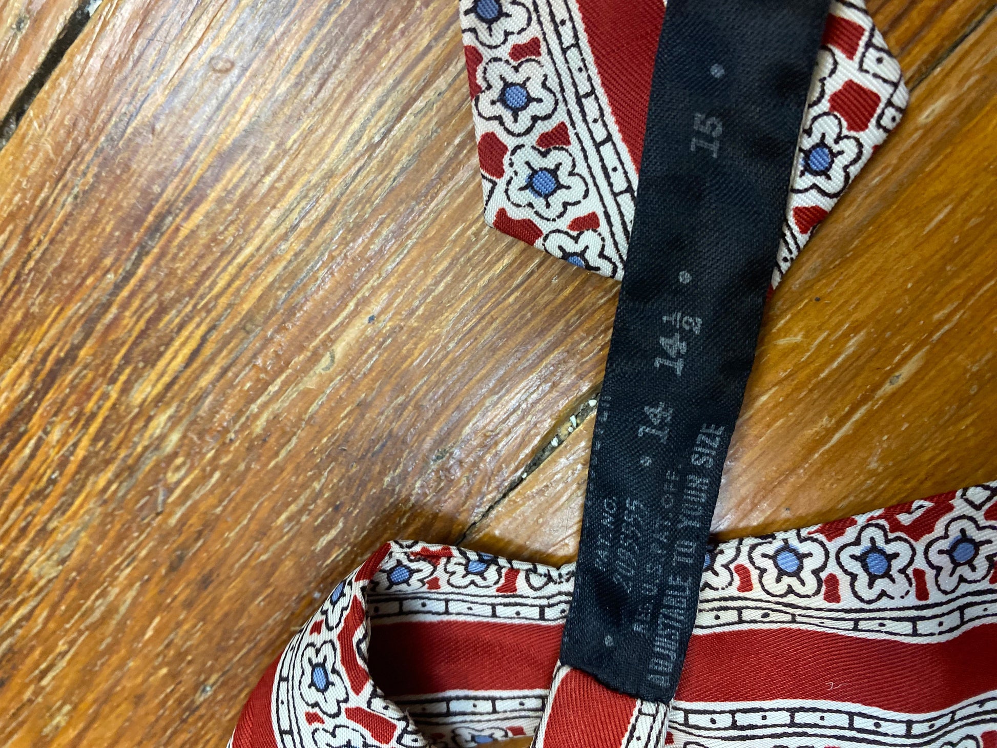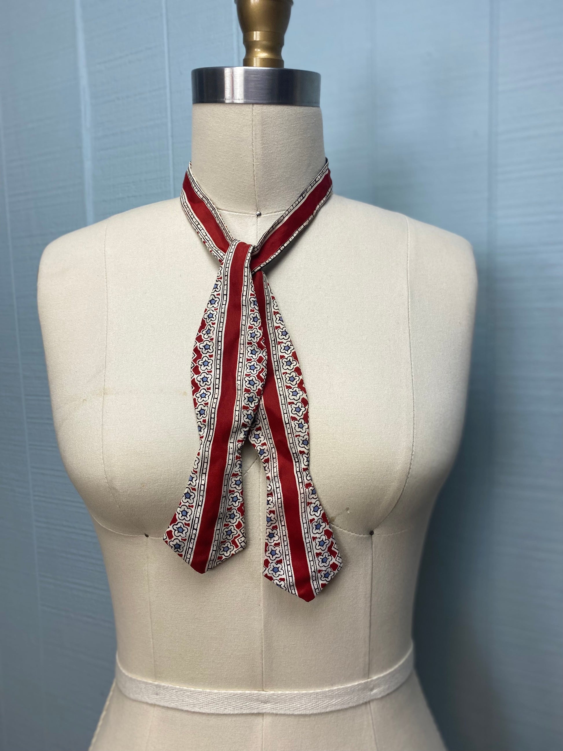 50's Self-Tie Wine Red Blue Graphic Print Bowtie