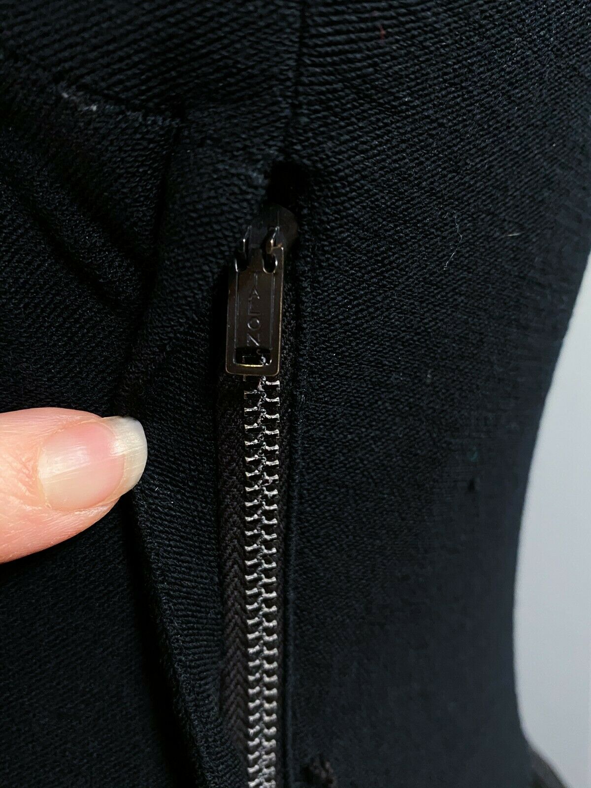 Material: wool twill bodice with slight stretch, acetate taffeta skirt
